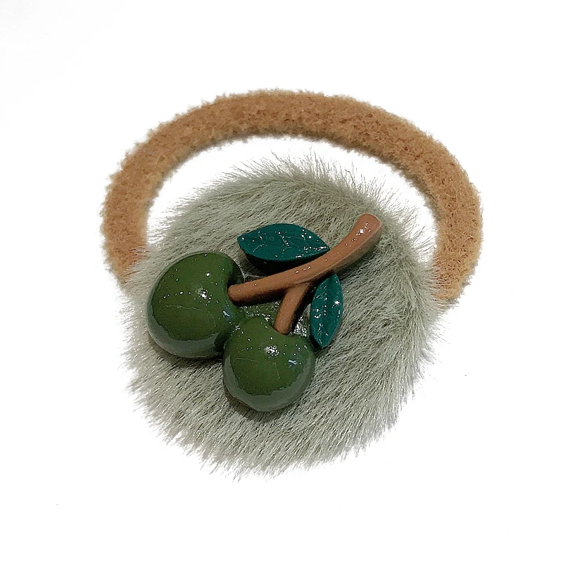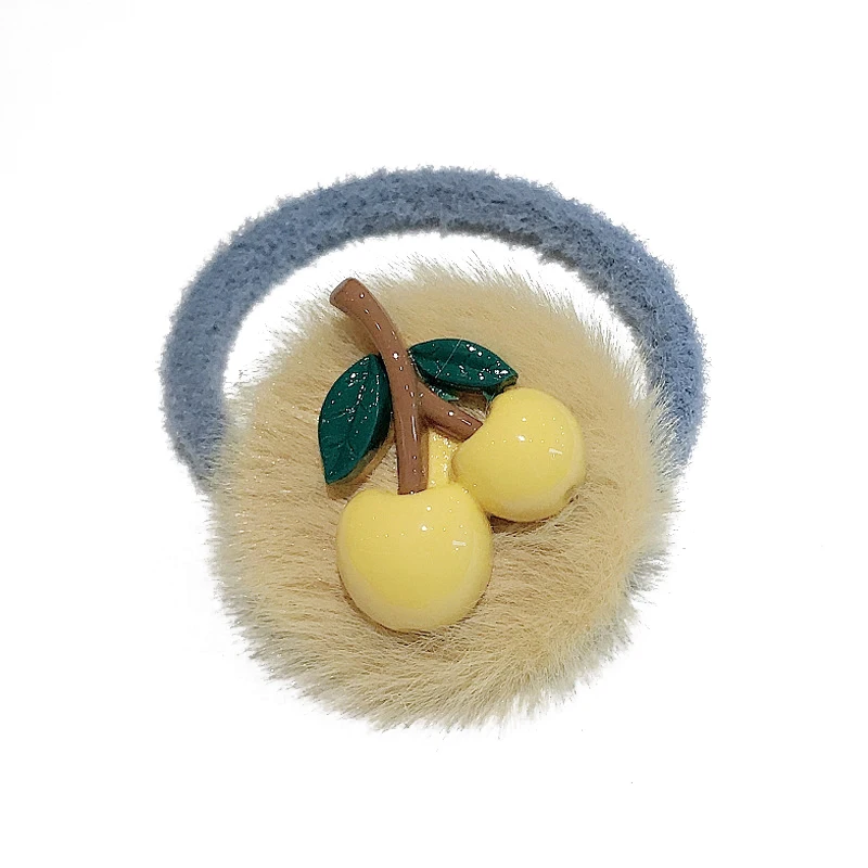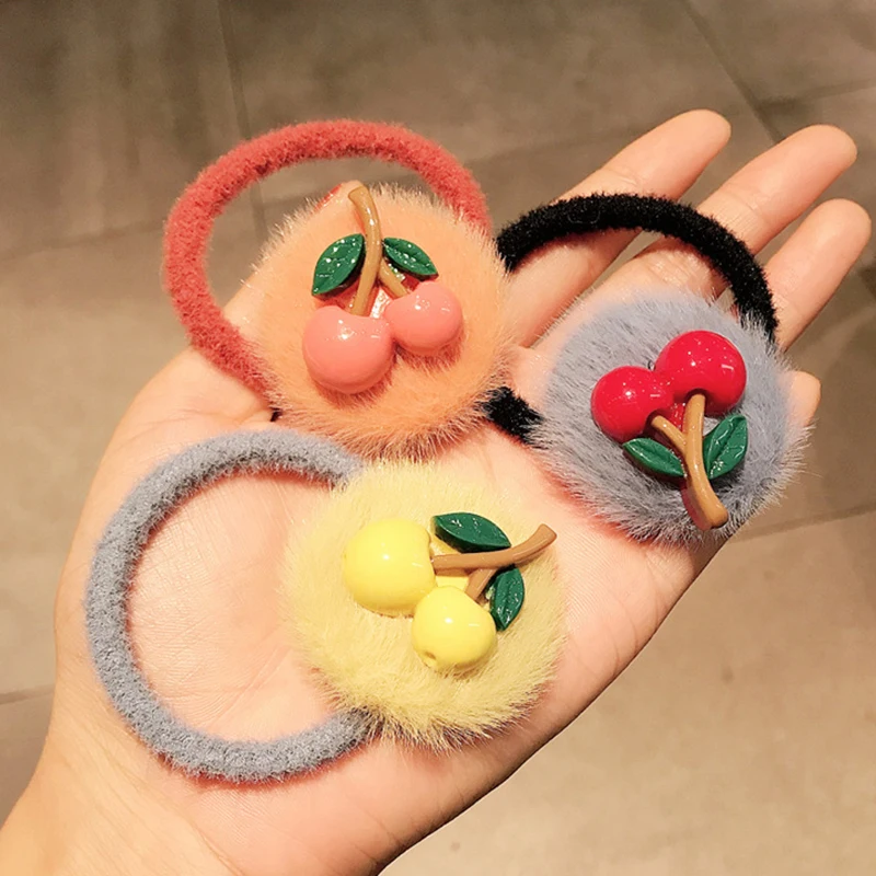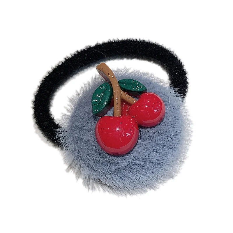 Sweet Cherry Hair Rope Faux Fur Hair Ring Elastic Rubber Band Plush Scrunchies