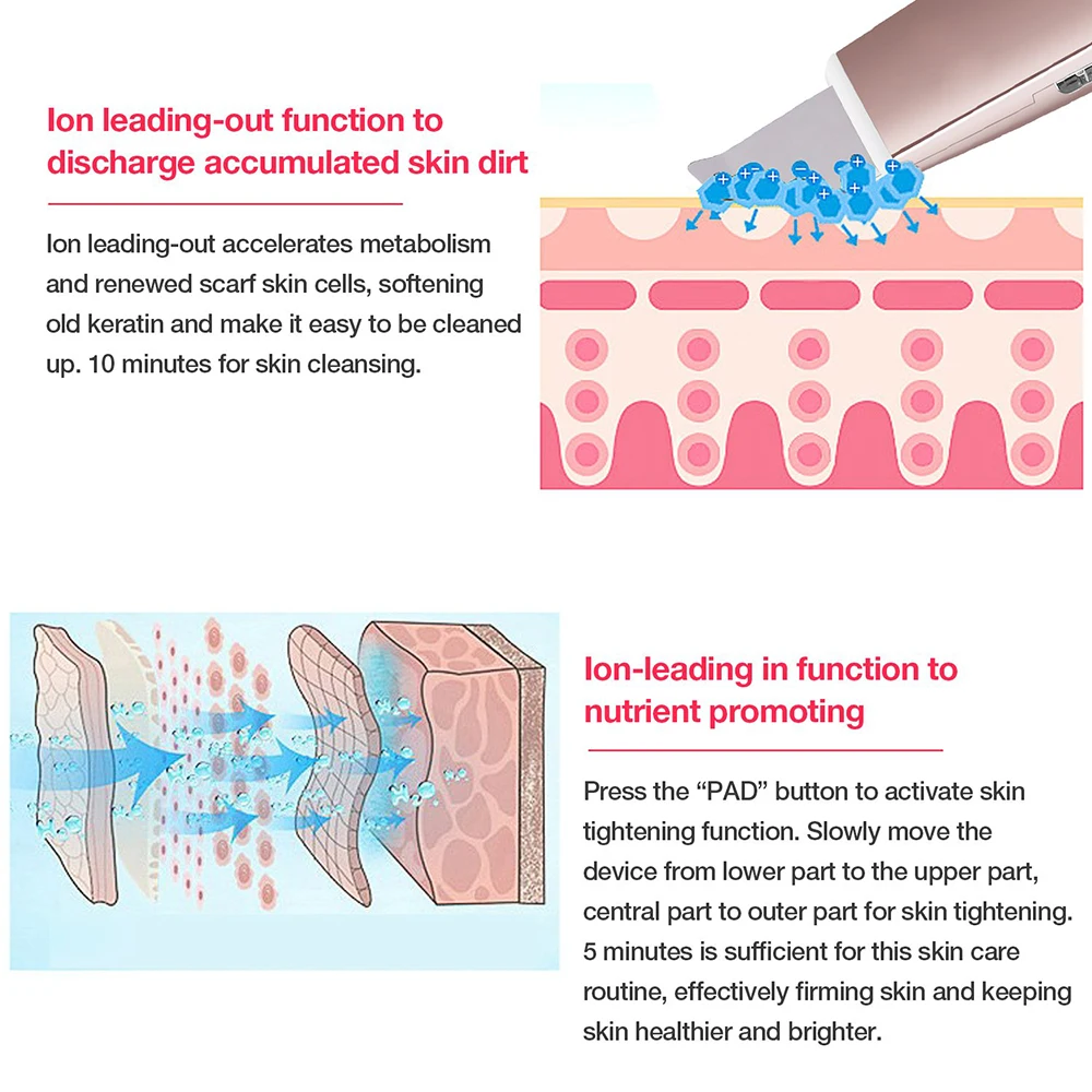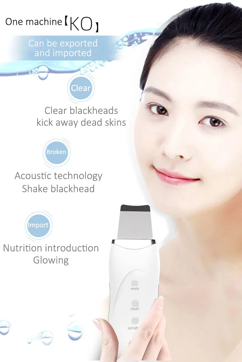 Ультразвуковой очиститель для лица, машина для очистки лица Limpiador, импортёр для очищения кожи, скруббер, красота, глубокое удаление, инструмент для лица, ионитофорез, электроосмос, отшелушивающий микротоковый ультразвуковой скраб для кожи лица
