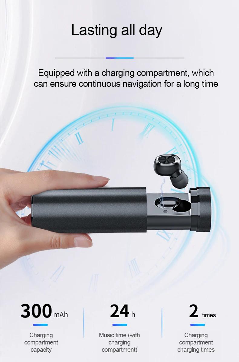 Время прослушивания музыки: около 24 часов (необходимо использовать с зарядным отсеком)