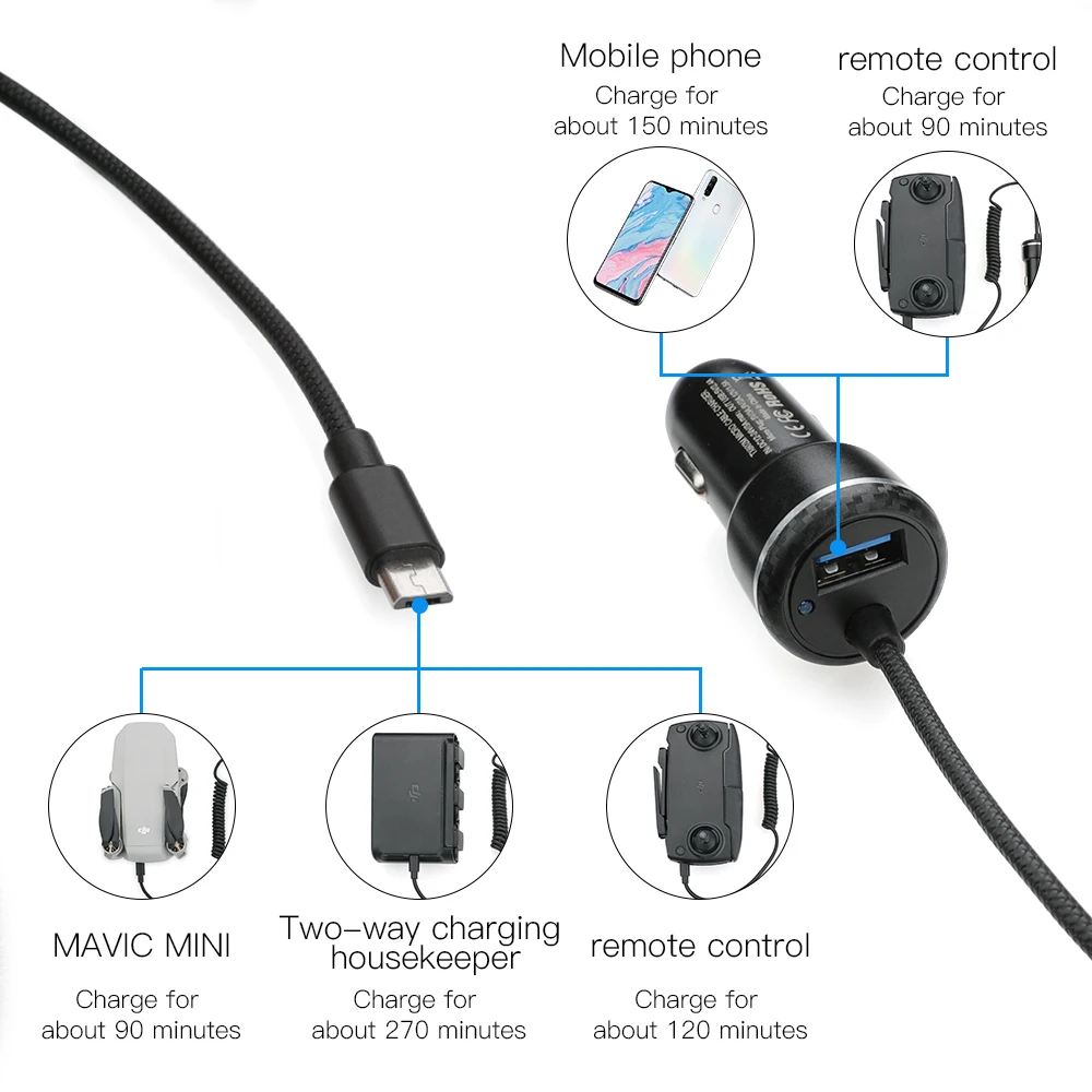 Автомобильное зарядное устройство для DJI Mavic Mini Drone батарея пульт дистанционного управления с USB быстрой зарядкой путешествия транспорт наружное зарядное устройство