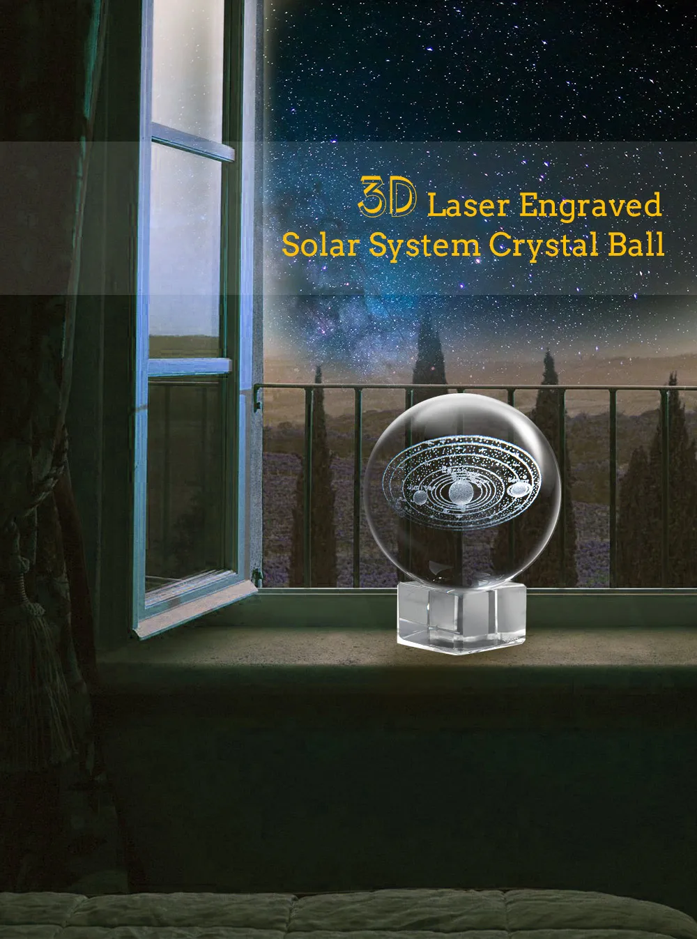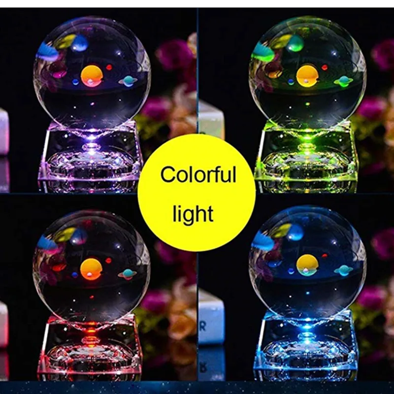 Светящаяся в темноте 3D миниатюрная солнечная система, модель планет, хрустальный шар, лазерная гравировка, шар, научная развивающая игрушка для детей, домашний офисный декор стола