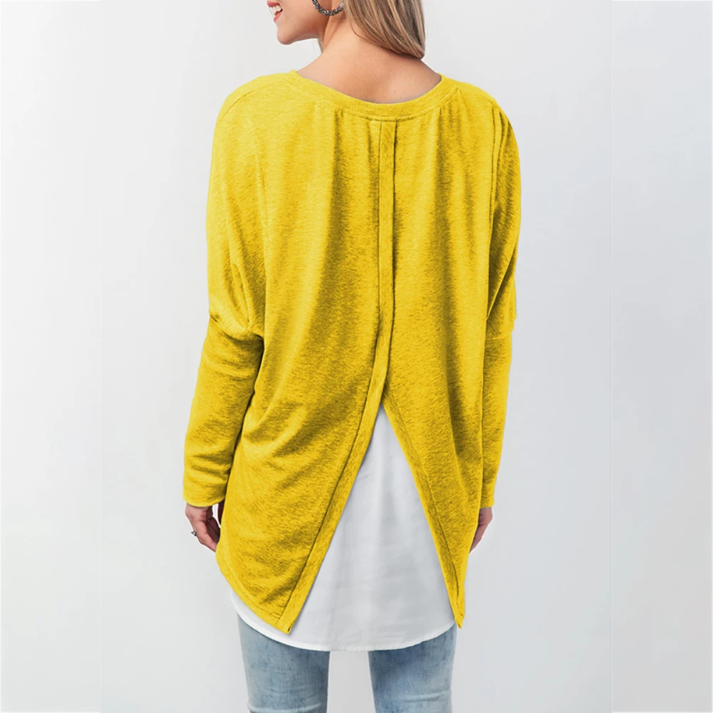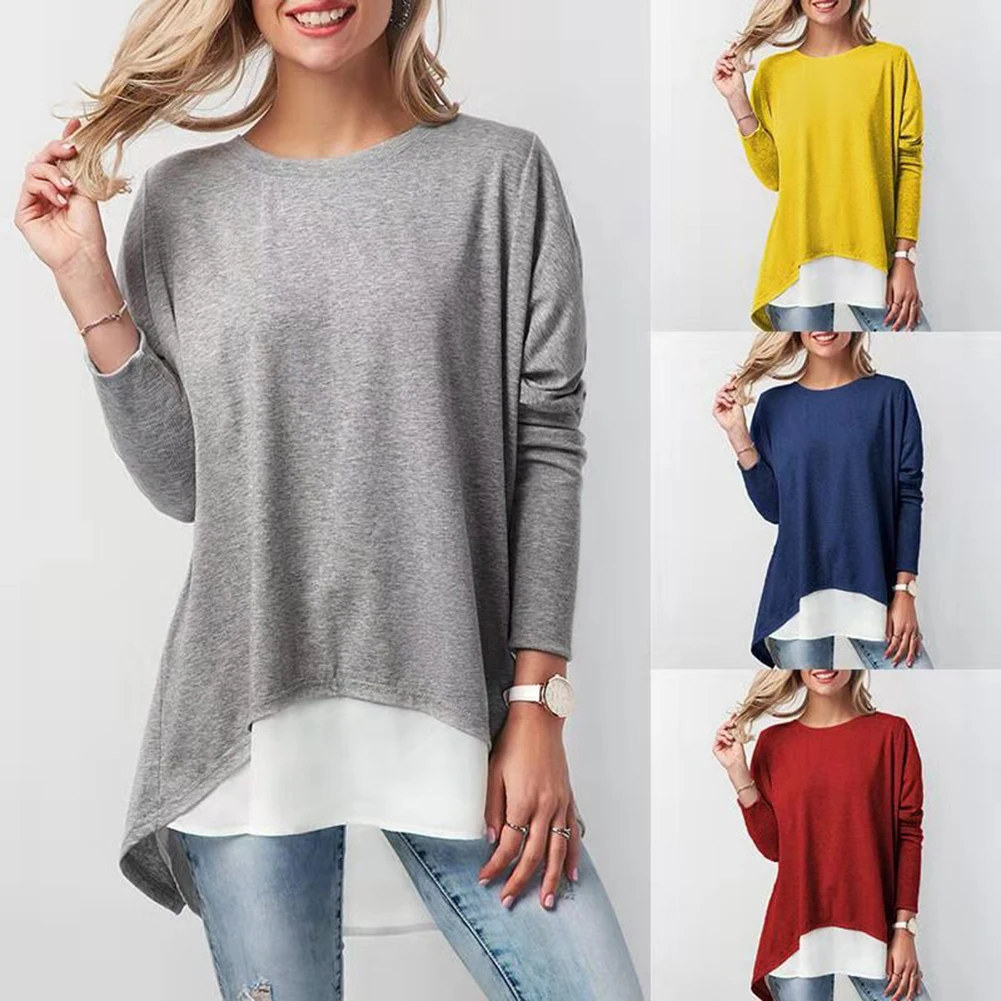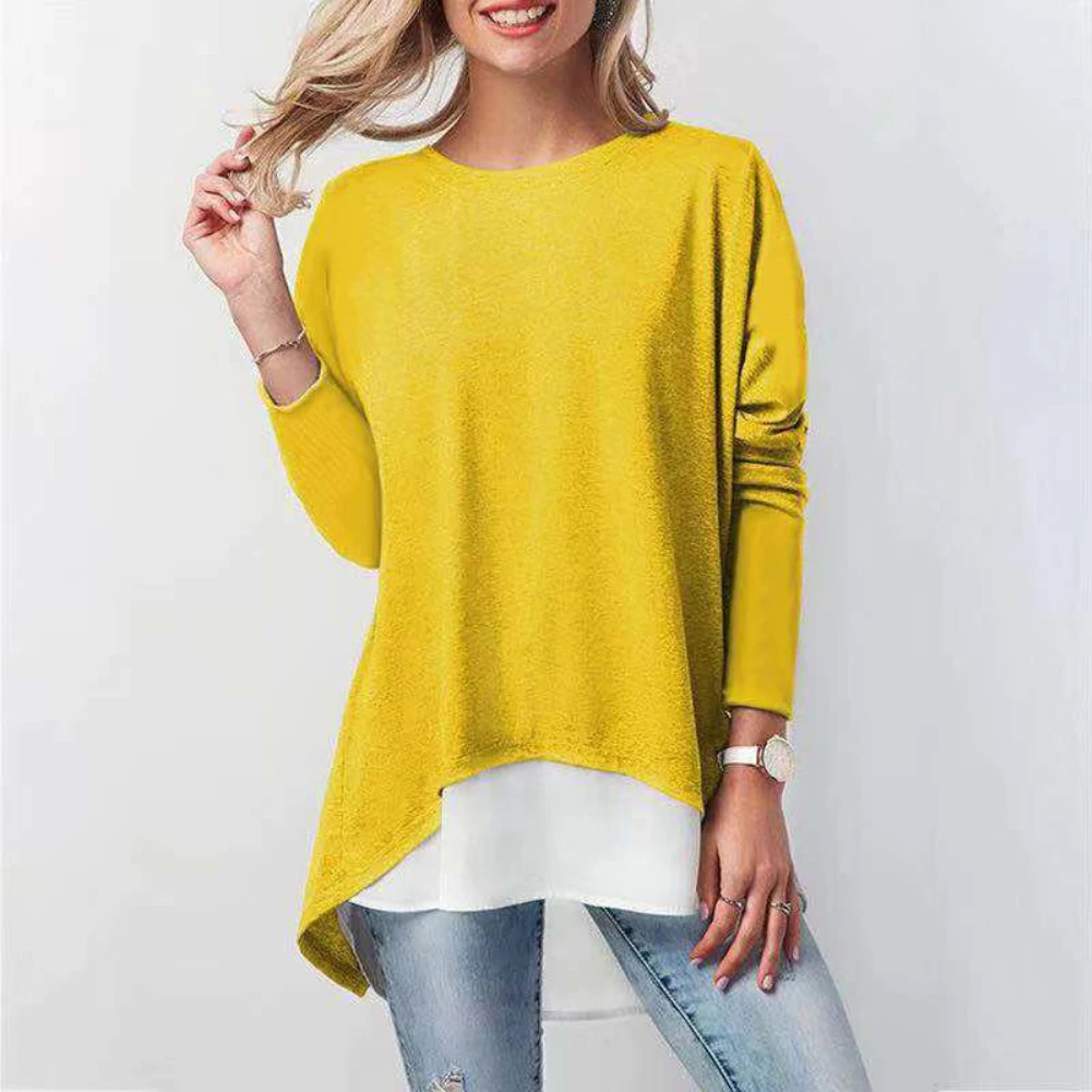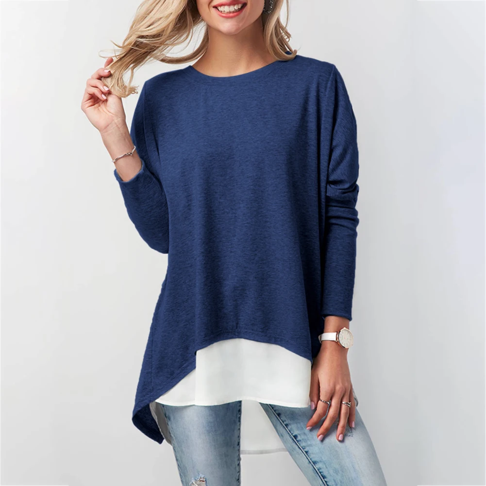 Женская Повседневная Блузка с длинным рукавом и О-образным вырезом размера плюс