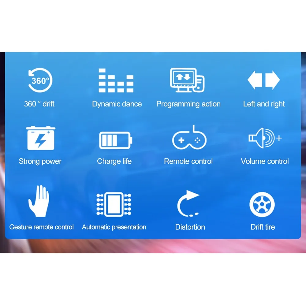 1. Сверхбольшая Емкость: 7,4 В (мА) сверхбольшая емкость высокоскоростной мощный литиевый аккумулятор, сверхдолговечная способность. 2. Крутые игрушки: ослепительный шокирующий светильник и музыка, скручивающий свисток тигра, дадут вам опыт реального звука автомобиля. Особенности движения вперед и назад, чтобы восстановить реальный звук запуска автомобиля. 3. Большое удовольствие: танцевальная функция с музыкой, Светильник обеспечивает большое удовольствие и супер шок. 4. Интеллектуальная функция зондирования: интеллектуальная функция зондирования жестов делает игрушку удобной и веселой в эксплуатации. 5. Гарантия качества: когда вы покупаете игрушки у нас, вы покупаете больше, чем просто высококачественные развивающие игрушки, но уверенность, потому что мы всегда обеспечим вам самое лучшее обслуживание клиентов.