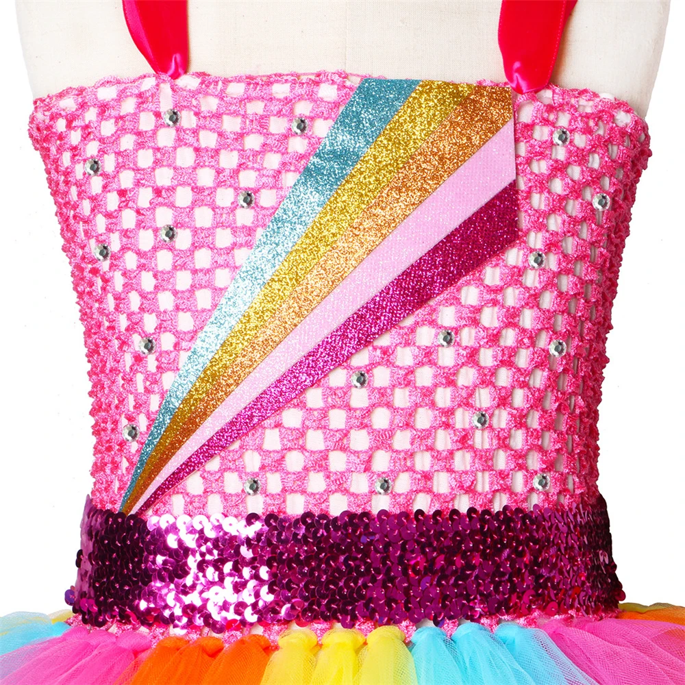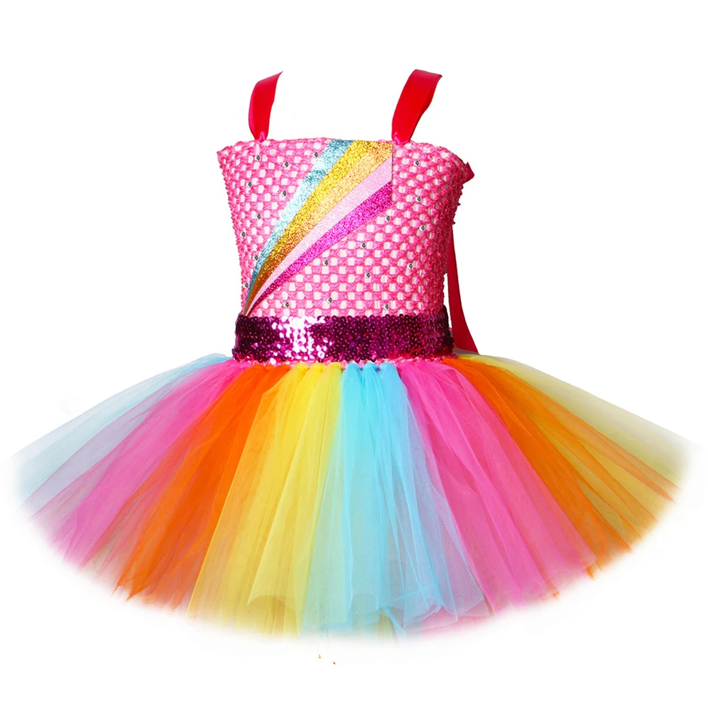 Jojo Siwa/платье-пачка с бантом для волос, Радужное платье принцессы для девочек фатиновые Детские платья-пачки для девочек, праздничный костюм на день рождения