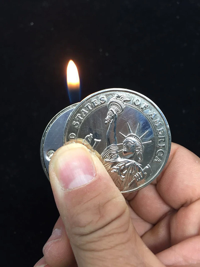 Новая Металлическая Бесплатная зажигалка бутан брелок креативная компактная газовая зажигалка надутая струя подвеска монета бар один доллар подарок брелок