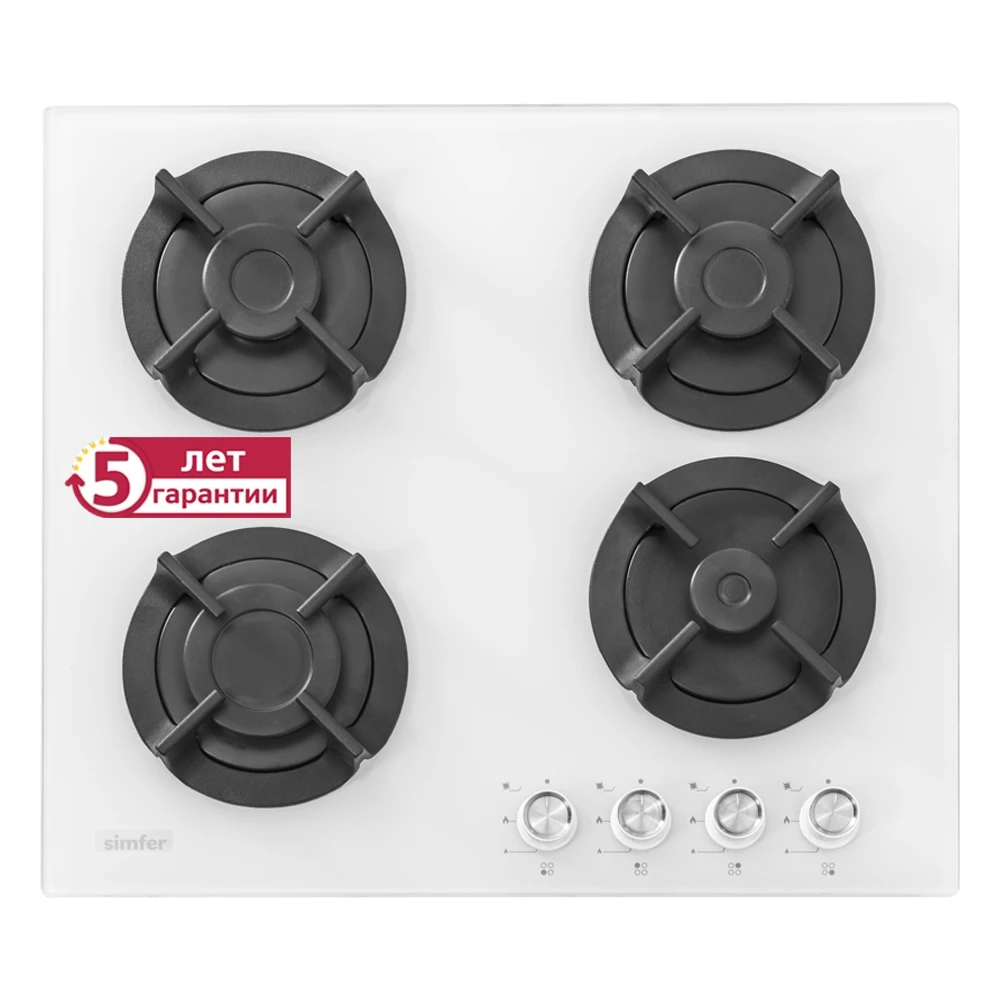 Описание Газовая варочная панель Simfer H60N40W416, чугунные решетки, автоподжиг