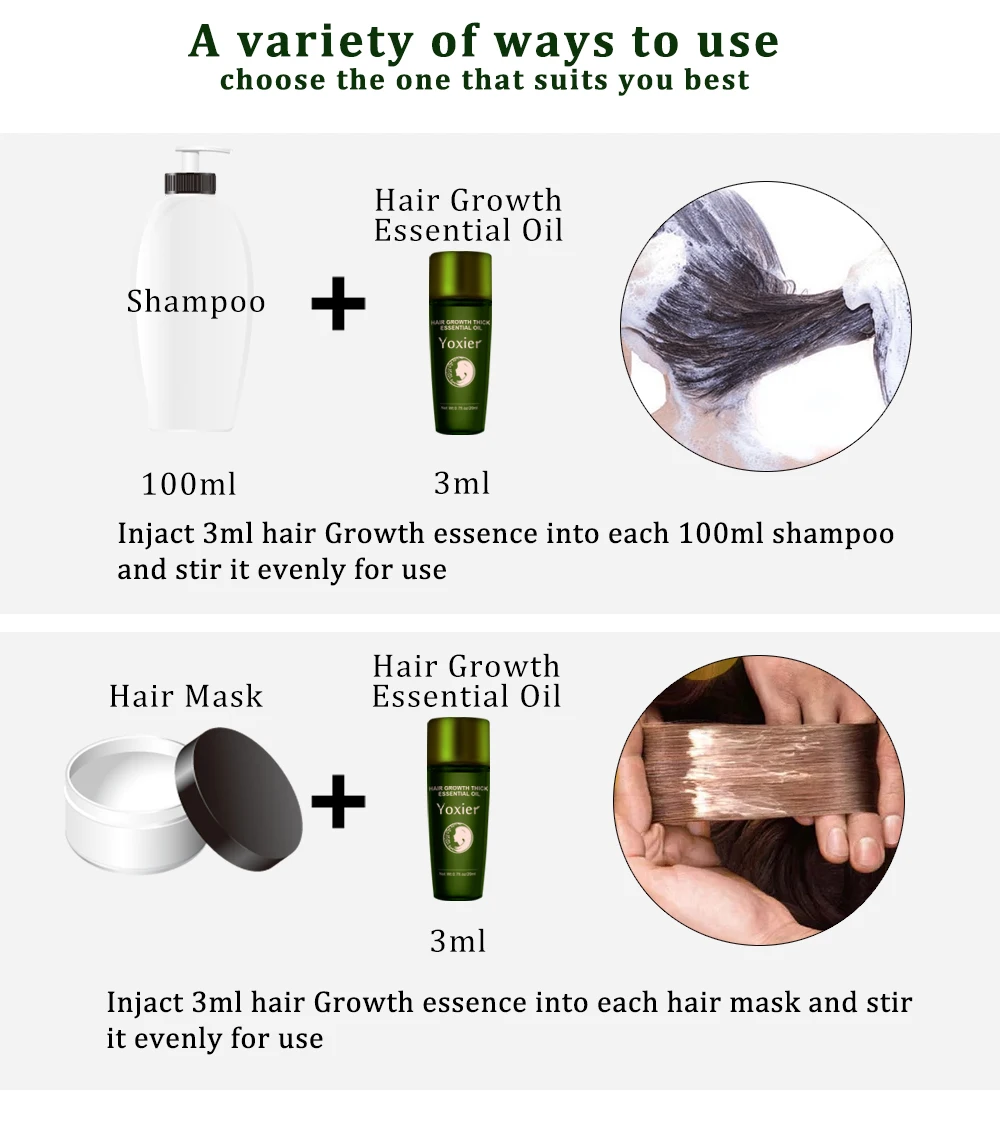 -Различные способы использования Выберите тот, который подходит вам лучше всего 1:Injact 3 мл эссенция для роста волос в каждый шампунь 100 мл и равномерно размешать его для использования 2:Injact 3 мл эссенция для роста волос в каждую маску для волос и равномерно размешать ее для использования
