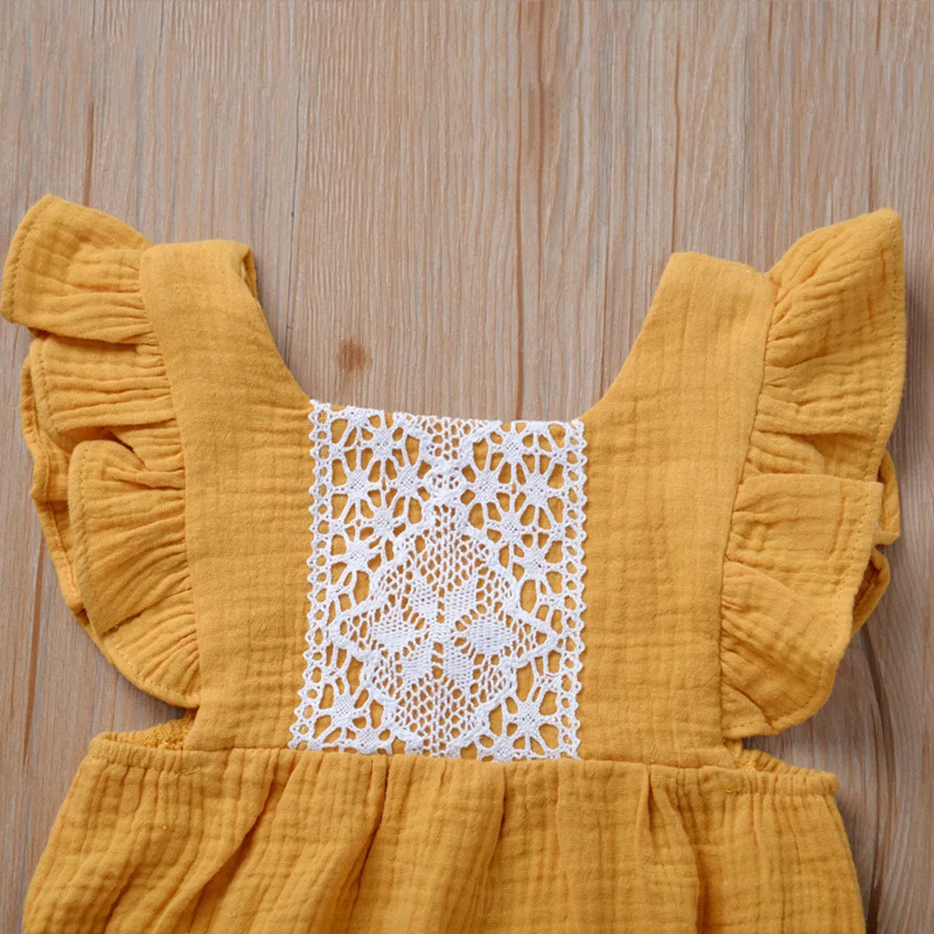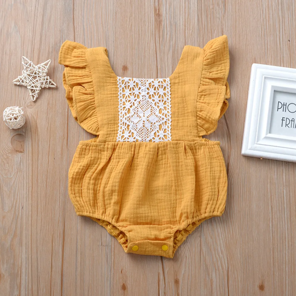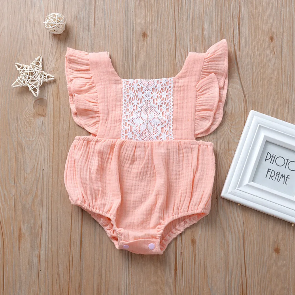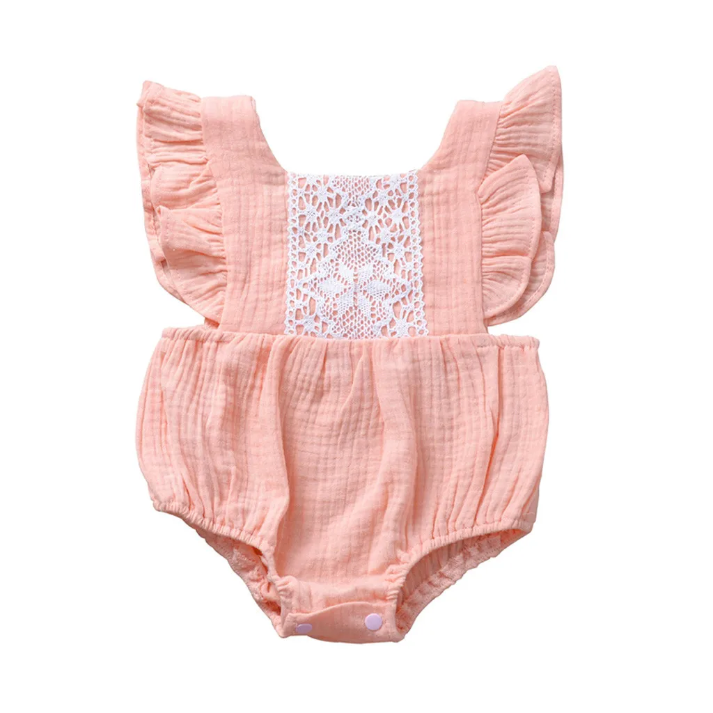 Одежда для новорожденных и маленьких девочек с оборками Топы с открытой спиной комбинезон боди кружевная одежда