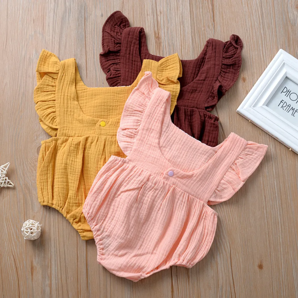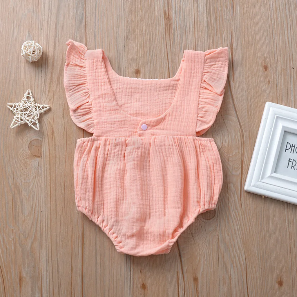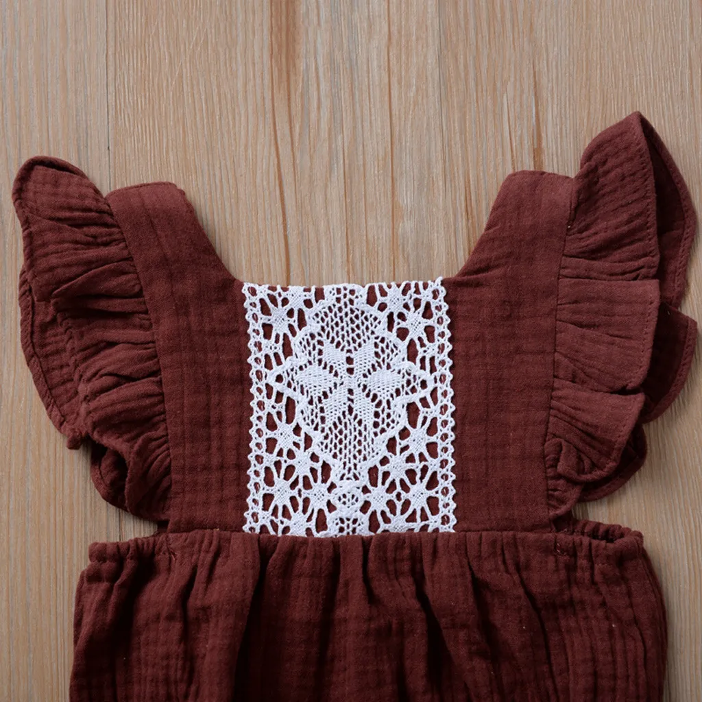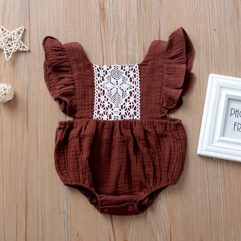 Одежда для новорожденных и маленьких девочек с оборками Топы с открытой спиной комбинезон боди кружевная одежда