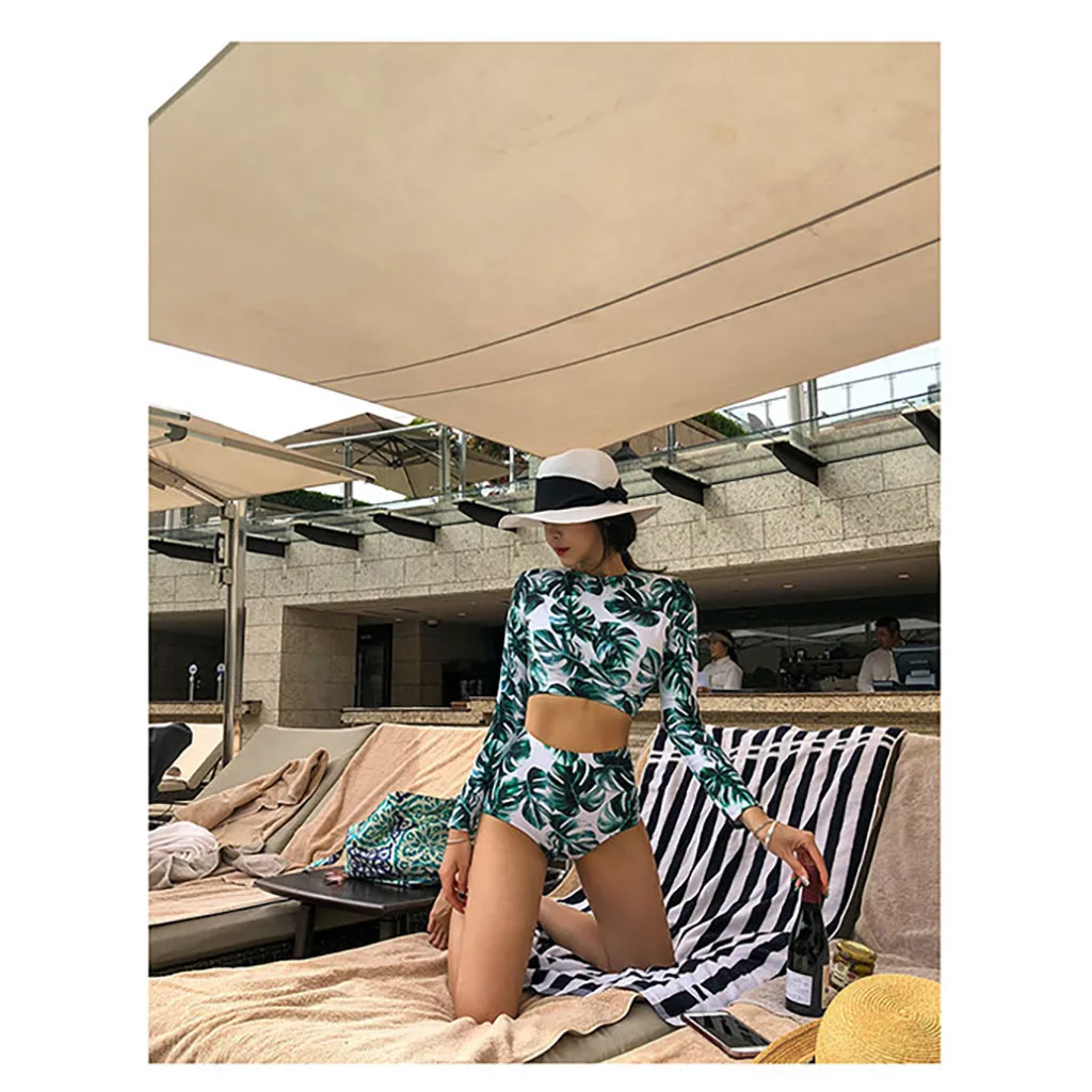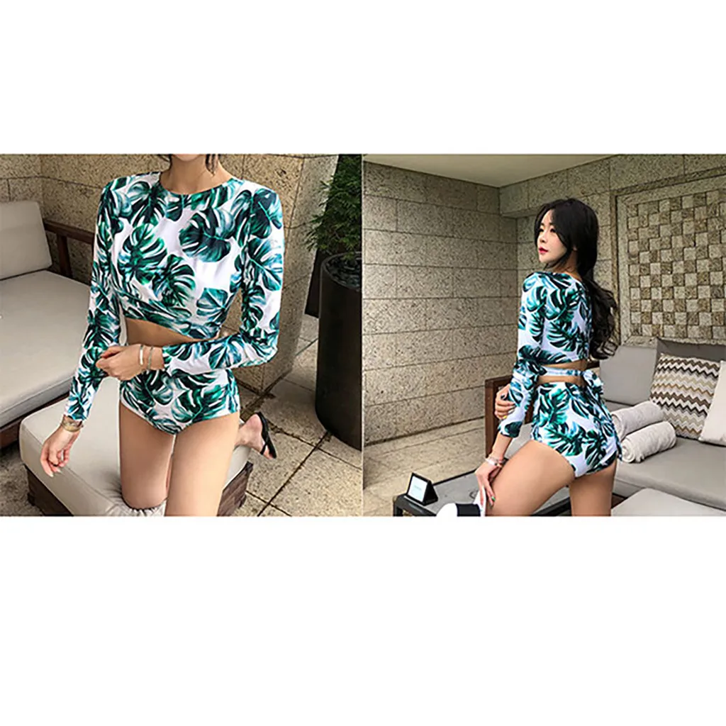 Женский короткий топ с длинным рукавом + шорты, комплект для серфинга, купальный костюм