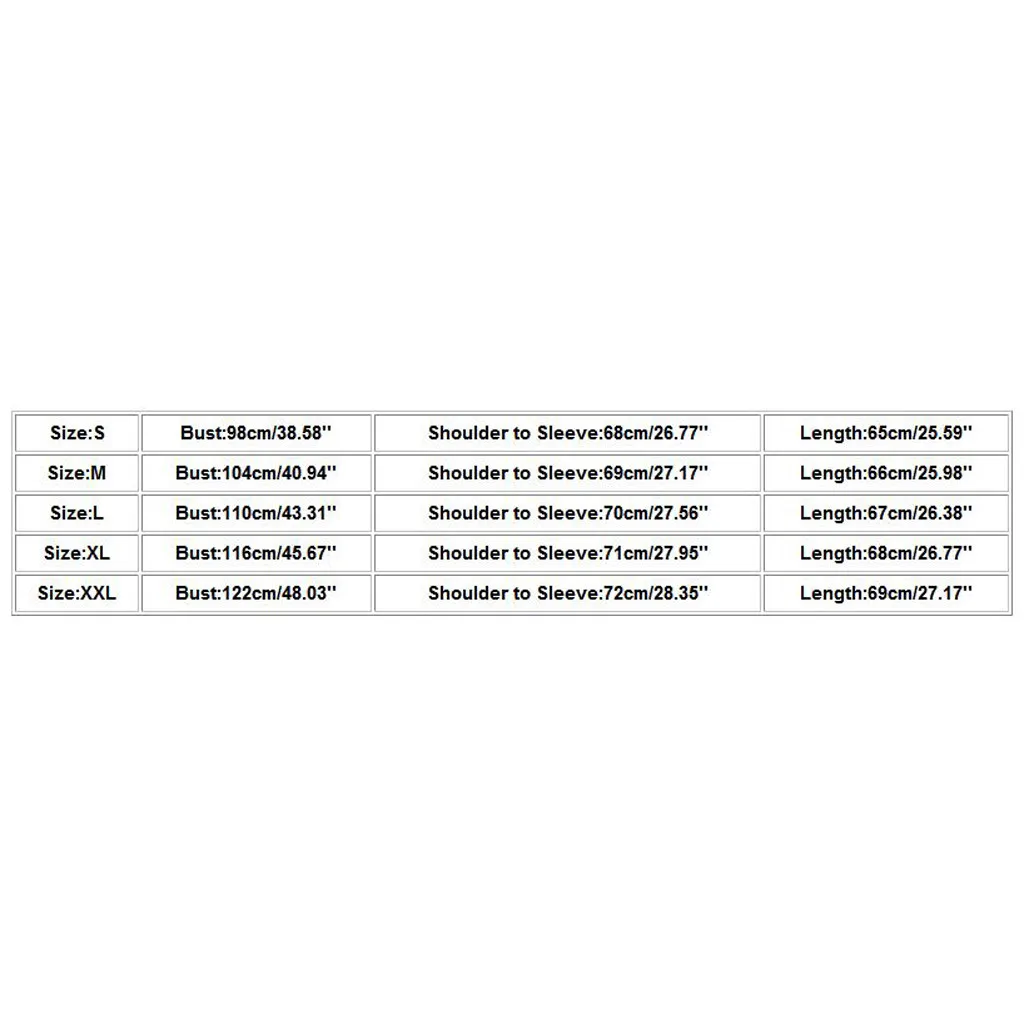 Размер Бюст От плеча до рукава Длина S 98 см/38,58 дюйма 68 см/26,77 дюйма 65 см/25,59 дюйма М 104 см/40,94 дюйма 69 см/27,17 дюйма 66 см/25,98 дюйма L 110 см/43,31 дюйма 70 см/27,56 дюйма 67 см/26,38 дюйма XL 116 см/45,67 дюйма 71 см/27,95 дюйма 68 см/26,77 дюйма XXL 122 см/48,03 дюйма 72 см/28,35 дюйма 69 см/27,17 дюйма