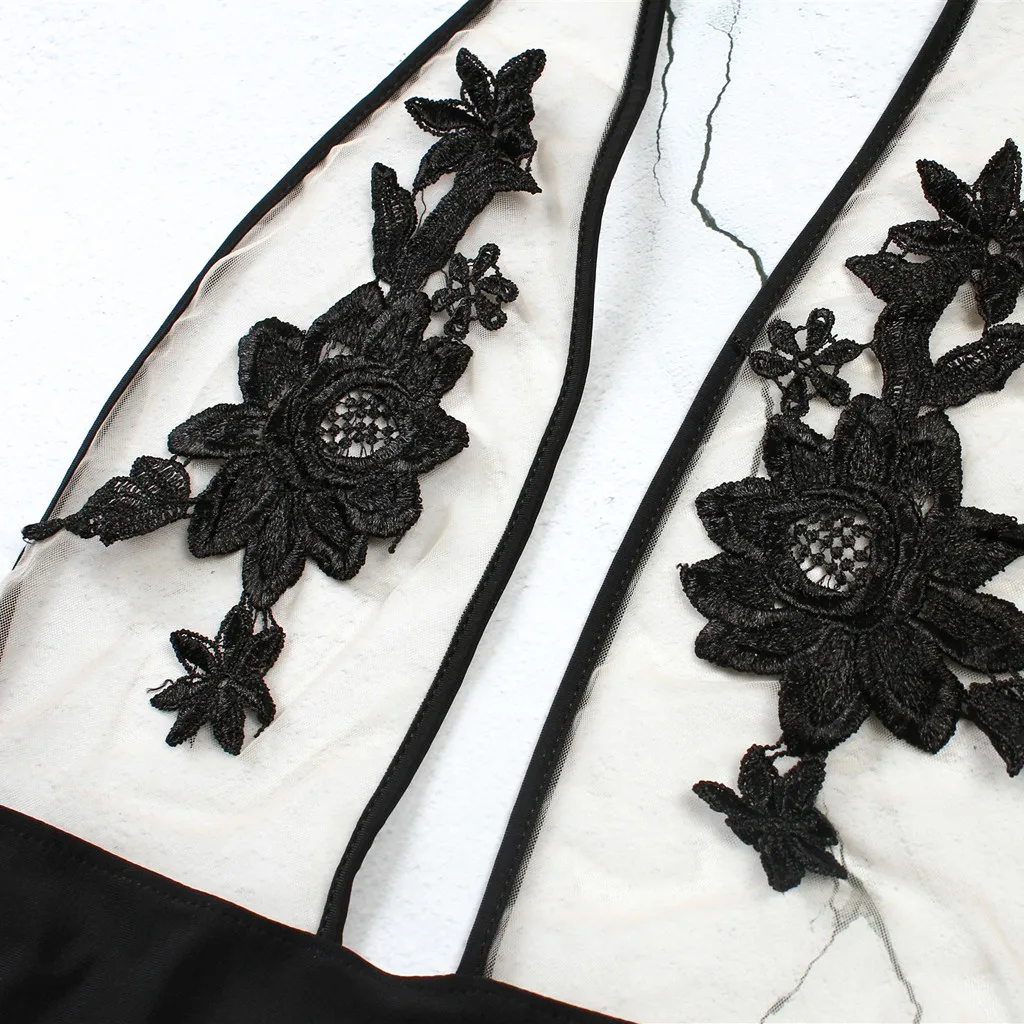 Женский цельный купальник-бикини Sexys с вышитой розой, сетчатый купальник, пляжная одежда