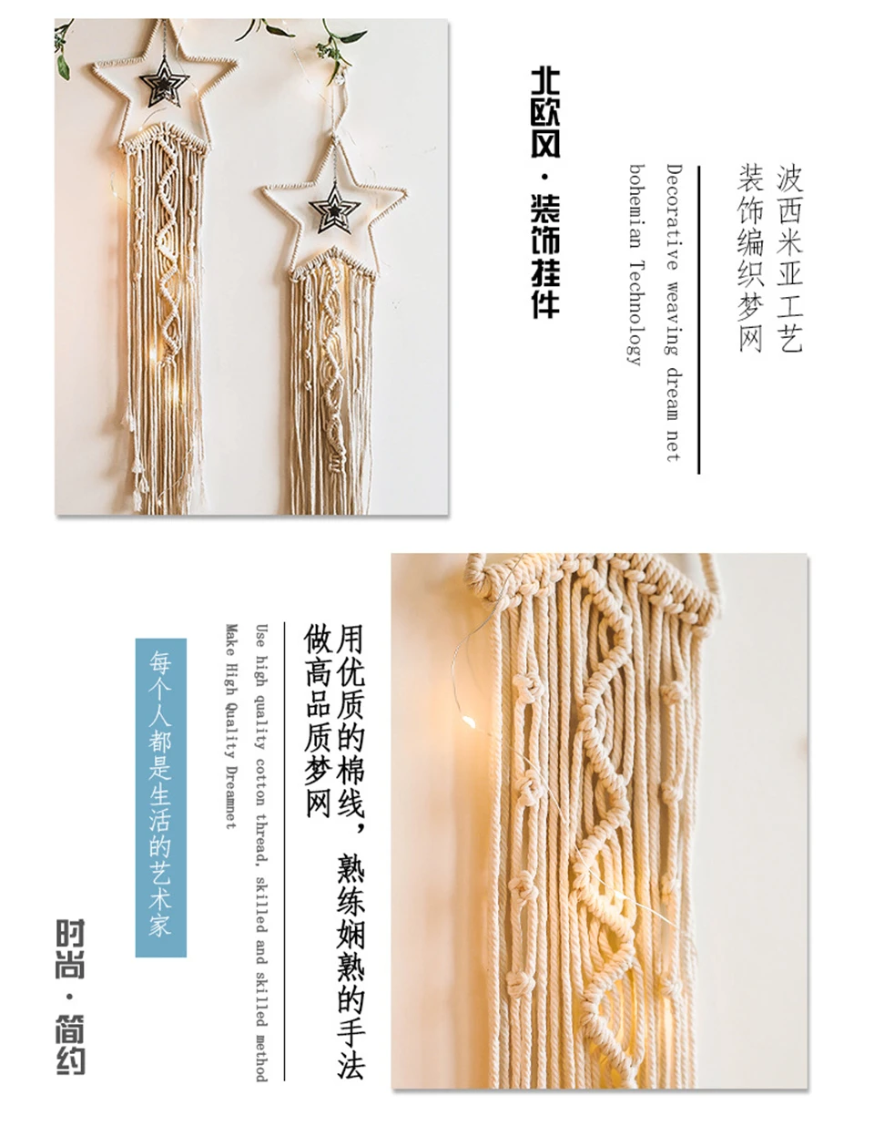 Материал: хлопковая нить, железное кольцо Цвет: бежевый Посылка включает в себя: 1 подвеску на стену в виде макраме Посылка, указанная выше, не входит в комплект. Примечание: светильник съемки и различные дисплеи могут привести к тому, что цвет товара на фотографии может немного отличаться от реального вещь. Допускается погрешность в измерениях +/- 1-3 см.