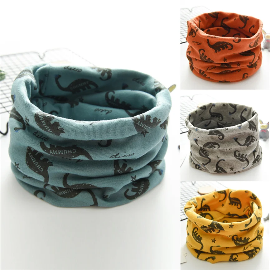 Новинка; Сезон осень-зима; Детский шарф с динозавром для мальчиков и девочек; Хлопковые шарфы с круглым вырезом