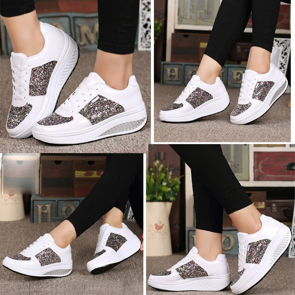 Для женщин женские туфли-танкеткиКроссовки с блестками Shake ShМодная спортивная обувь для девочек oes