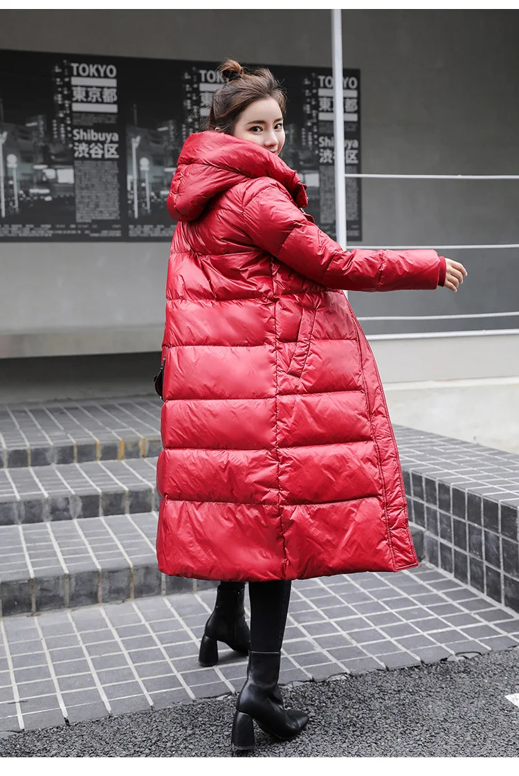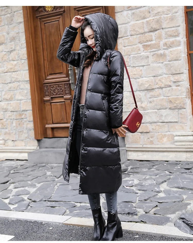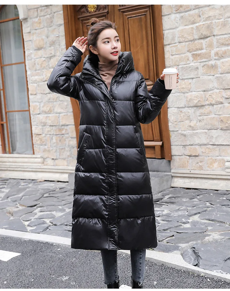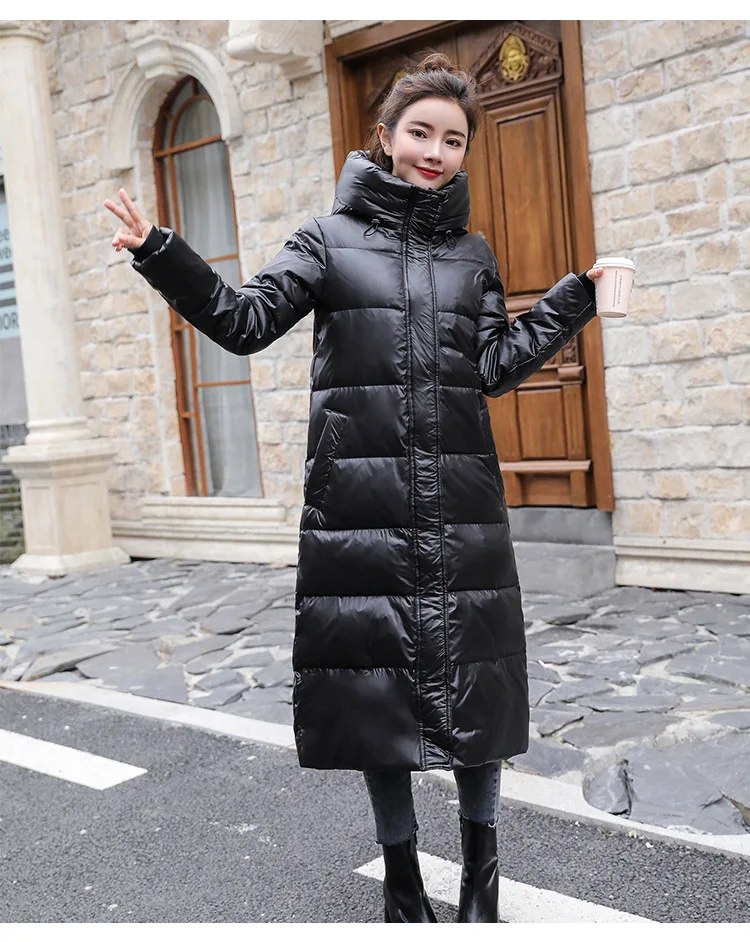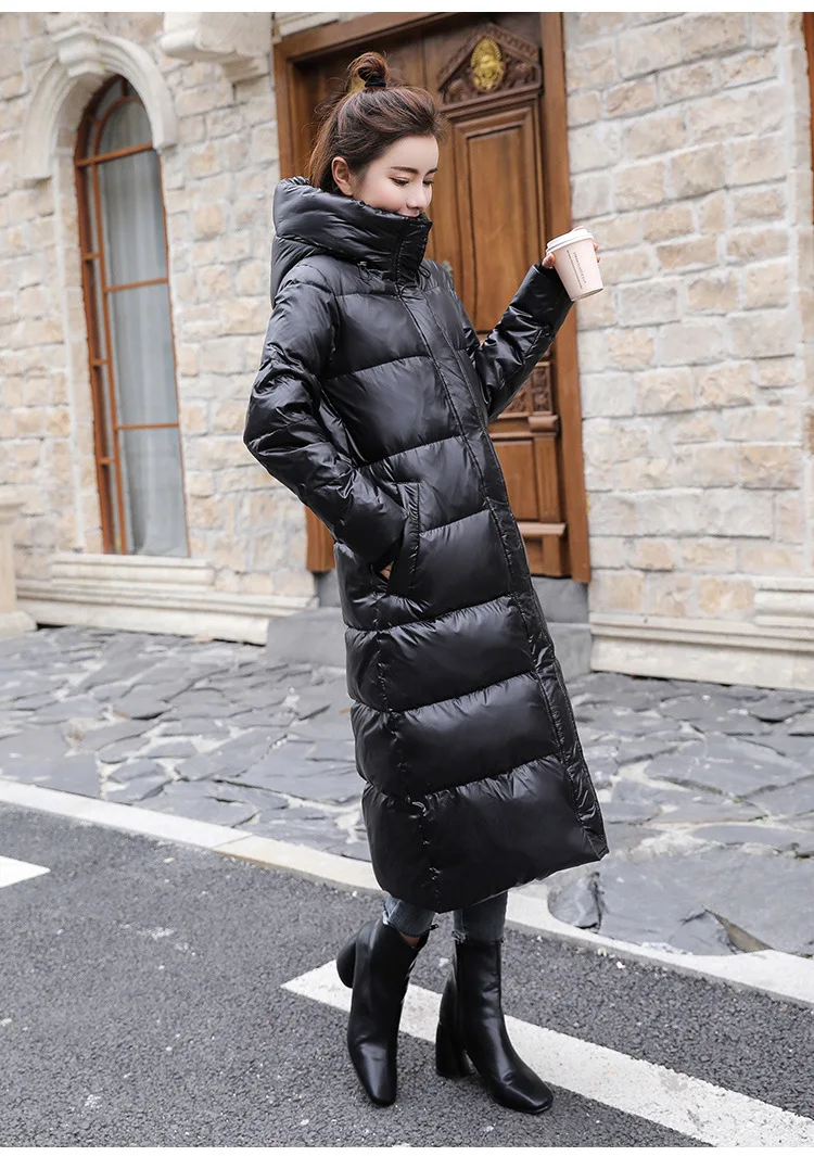 Женский пуховик, длинная толстая куртка с капюшоном, теплая парка, водонепроницаемая, для зимы, 2019