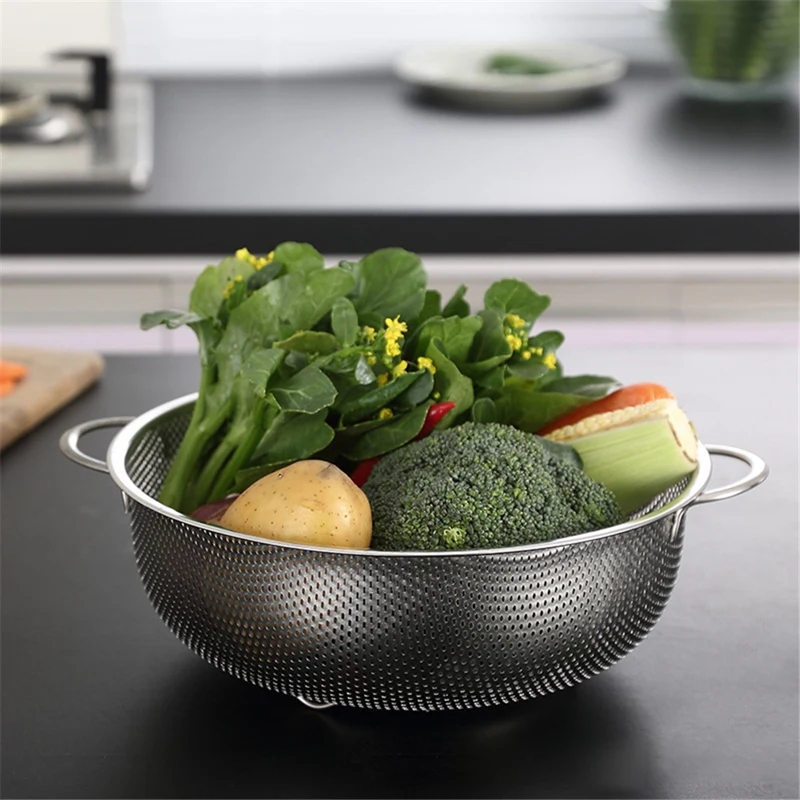 Дуршлаги из нержавеющей стали с ручкой, дуршлаг перфорированный ситечко для кухни паста/овощи/рис/фрукты/еда
