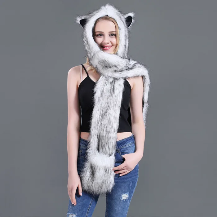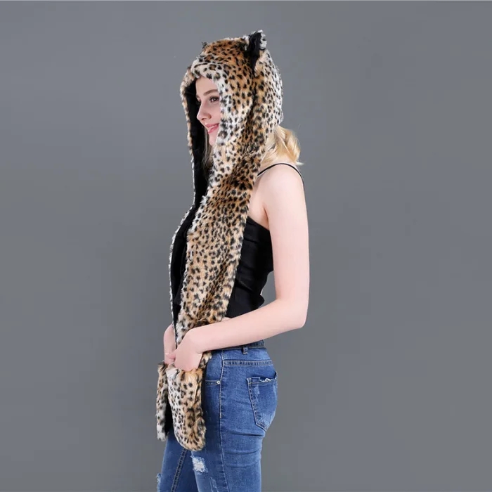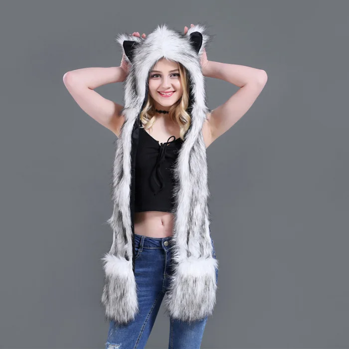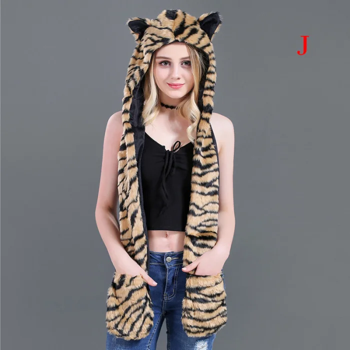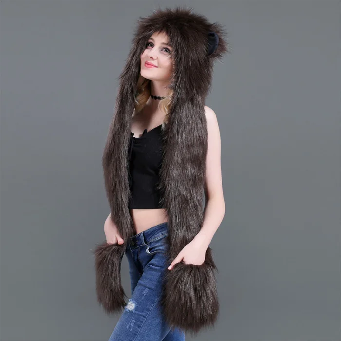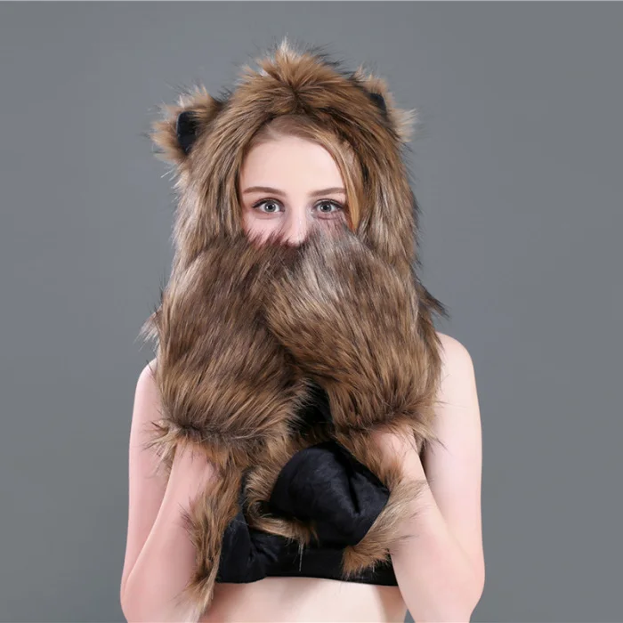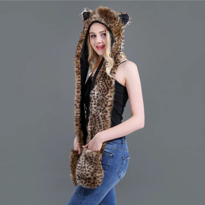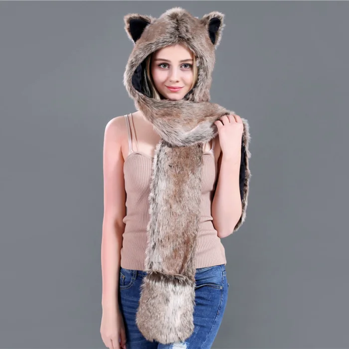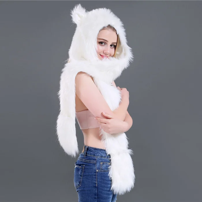 Шапка с искусственным мехом, шапка, шарф, перчатки, зимние варежки, 3 в 1, функциональная толстовка с капюшоном и ушками, GDD99