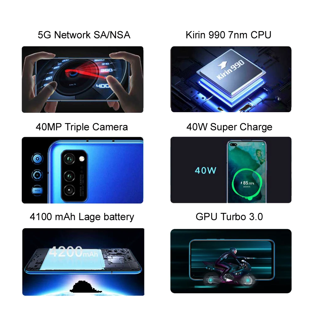 Дисплей Размеры: 6,57 дюйм (ов) * С закругленными углами на дисплее длина диагонали экрана составляет 6,53 дюйма при измерении в соответствии со стандартным прямоугольником (фактическая видимая площадь немного меньше). Цвет: 16,7 миллионов цветов Тип: Ips Разрешение: FHD + 2400x1080 * Разрешение измеряется как стандартный прямоугольник, с закругленными углами дизайна, Эффективные пиксели немного меньше. Процессор HUAWEI Kirin 990 Процессор: 2 x Cortex-A76 на основе 2,86 ГГц + 2 x Cortex-A76 на основе 2,09 ГГц + 4 x Cortex-A55 1,86 ГГц GPU: 16-ядерный Mali-G76 NPU: Большое ядро + крошечные ядро NPUs (блок обработки нейронной сети) Операционная система Magic UI (на базе Android 10) Память 6 ГБ ОЗУ + 128 Гб ПЗУ 8 ГБ ОЗУ + 128 Гб ПЗУ 8 ГБ ОЗУ + 256 Гб ПЗУ Встроенная память: UFS3.0 DDR: LPDDR 4X * Доступное внутреннее хранилище может быть меньше, так как часть внутреннего хранилища занимает программное обеспечение. Фактическое пространство памяти может изменяться из-за обновлений приложений, пользовательских операций и других связанных с ними факторов. Камера Задний Камера: 40 МП (диафрагма f/1,8) + 8 МП (сверхчувствительная камера, диафрагма f/1,6, OIS) + 8 МП (телекамера, Диафрагма f/2,4, OIS) Фронтальная Камера: 32 Мп + 8 МП * Пиксели могут отличаться в зависимости от режима съемки. Батарея 4200 мАч (стандартное значение) Зарядка HUAWEI SuperCharge (макс. 40 Вт) * Требуется кабель и зарядное устройство HUAWEI SuperCharge. Сеть Основной сим-карты: 5G 5G NR: n1/n3/n41 (2515-2675 МГц)/n77/n78/n79 4G FDD LTE: B1/B2/B3/B4/B5/B7/B8/B12/B17/B18/B19/B26 4G TDD LTE: B34/B38/B39/B40/B41 3g WCDMA: B1/B2/B4/B5/B6/B8/B19 2G GSM: B2/B3/B5/B8 * В версии с двумя sim-картами можно установить любой слот для карты, чтобы вместить первичную или вторичную sim-карту. * Функции, доступные в сети в режиме реального времени, зависят от ситуации в сети перевозчика и связанных с этим услуг. Подключение Беспроводная передача данных: 802,11 a/b/g/n/ac (wave2), 2,4 ГГц и 5 ГГц Версия Bluetooth: Bluetooth 5,1, BLE, SBC, AAC, LDAC. Тип разъема для зарядки: USB Type-C, USB 2,0 Earjack: Тип-C earjack Прочие ожерелья и подвески: ПК данные синхронизации Расположение Gps (L1 + L5 dual band)/gps/ГЛОНАСС/BeiDou/Galileo (E1 + E5a dual band)/QZSS (L1 + L5 dual band) NFC Режим чтения записи/одноранговый режим/режим эмуляции карты (оплата * sim-картой, или HCE) поддерживается. * Sim-карта поддерживает только слот SIM 1. Датчики давления Жест Сенсор Гироскоп Компас Датчик приближения Сенсор Гравитационный Сенсор Окружающего светильник Сенсор Аудио *. Mp3, *. mp4, *. 3gp, *. ogg, *. amr, *. aac, *. flac, *. wav, *. midi Видео 3gp, mp4 В коробке Телефон (встроенный аккумулятор) x 1 Зарядное устройство x 1 Кабель типа C x 1 Наушники type-C x 1 Руководство по быстрому запуску x 1 Инструмент для извлечения x 1 Гарантийный талон-1 шт.