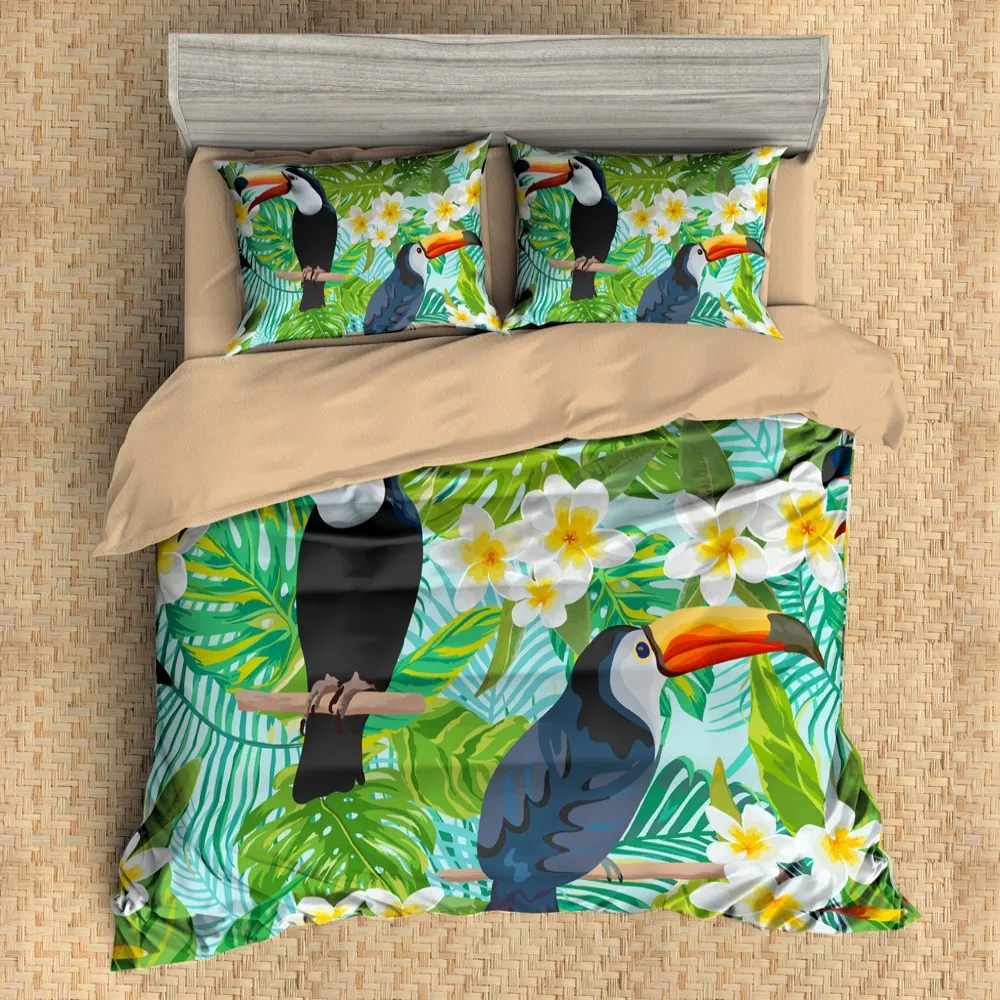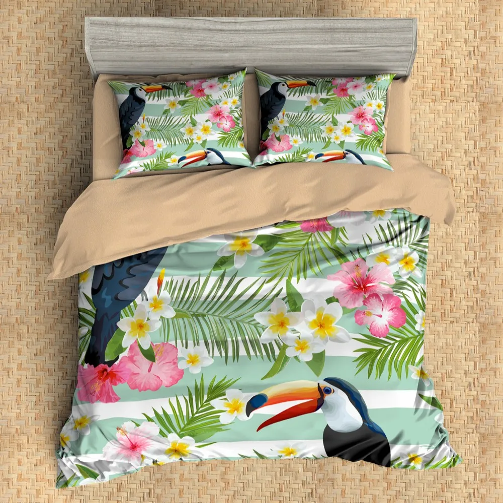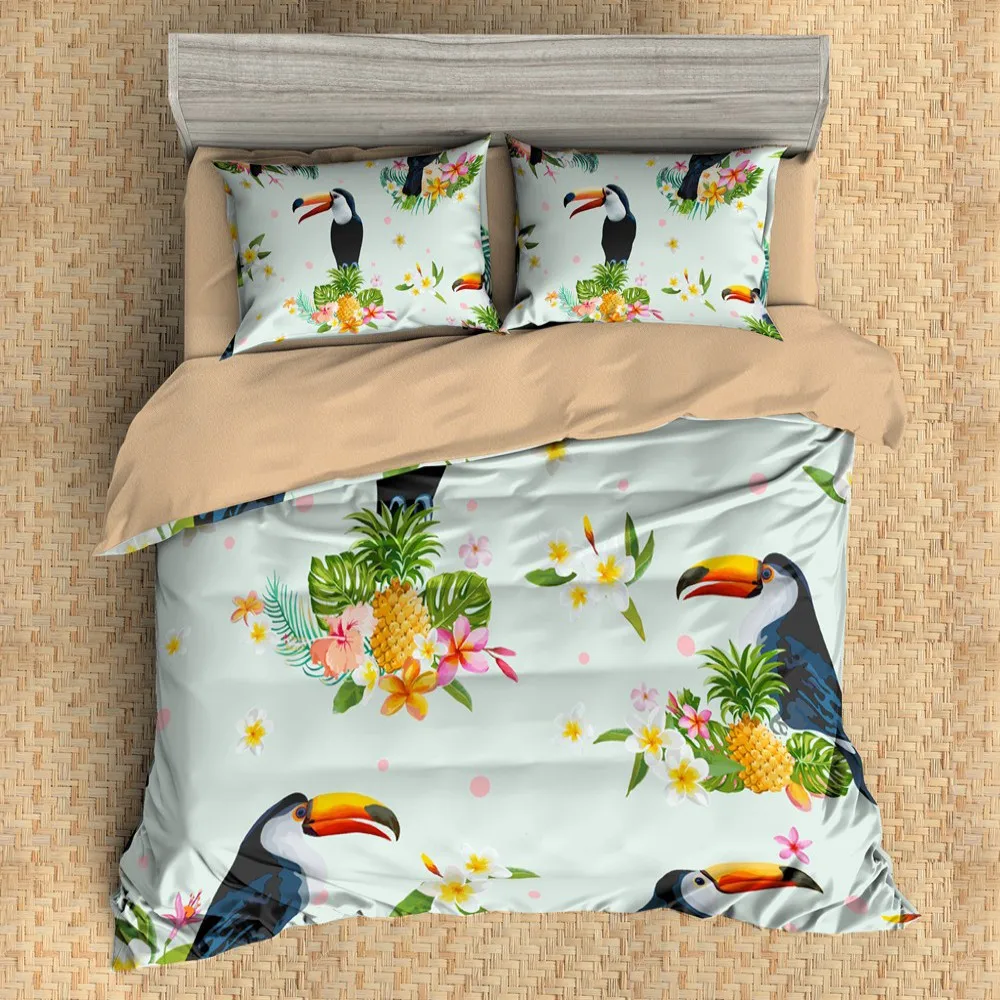 Летний тропический растительный фруктовый Комплект постельного белья милый Тукан пододеяльник набор кактус ананас Комплект постельного белья Твин Полный Quueen King Постельные принадлежности