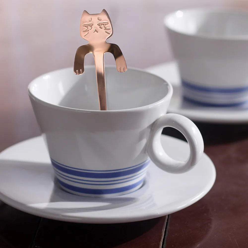 4 шт., милая ложка для кошек, ложка с длинной ручкой, столовые приборы, принадлежности для кофе, кухонные гаджеты, креативная кофейная ложка, используемая для чая 2020