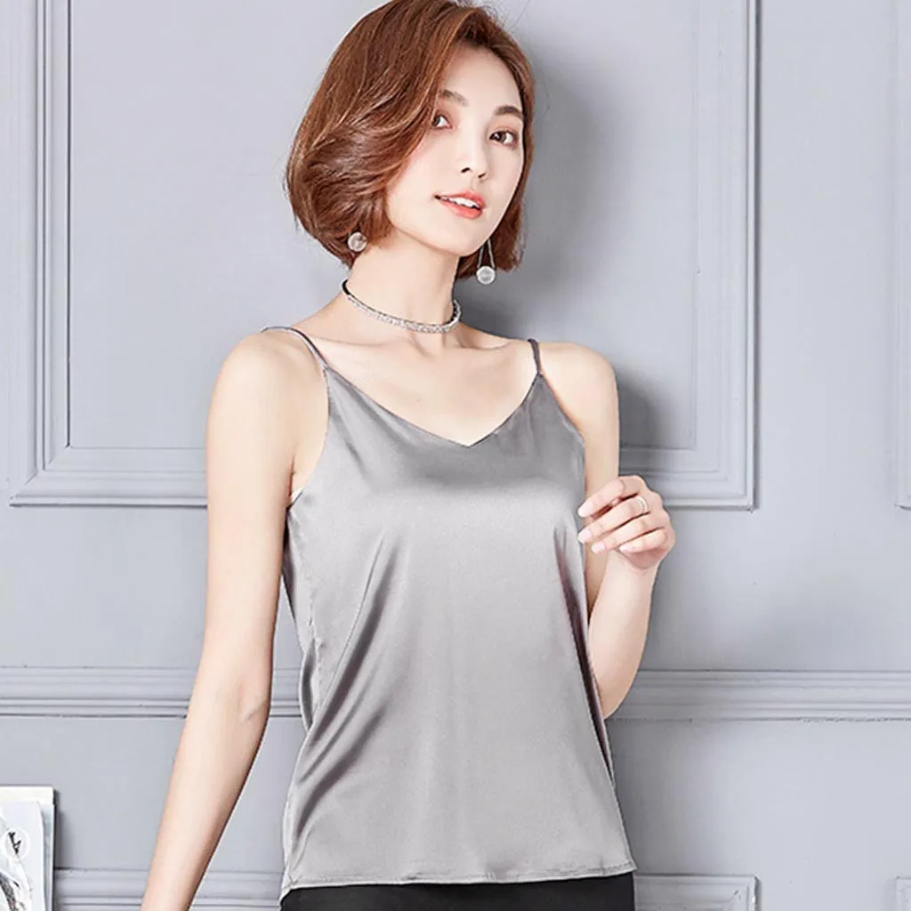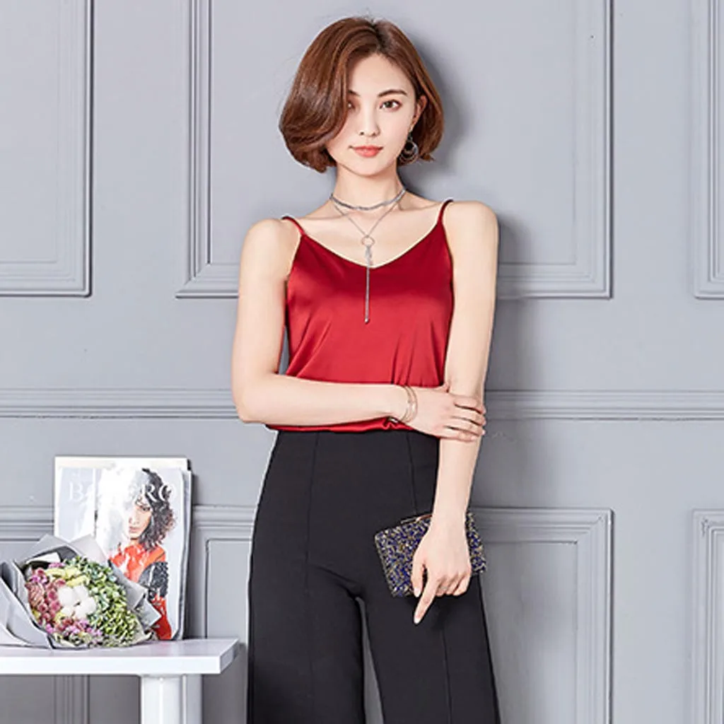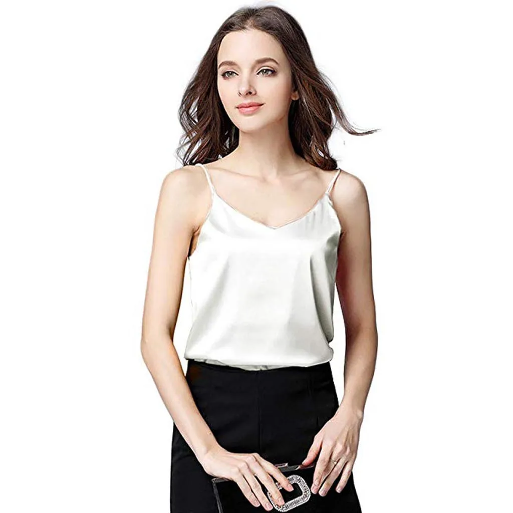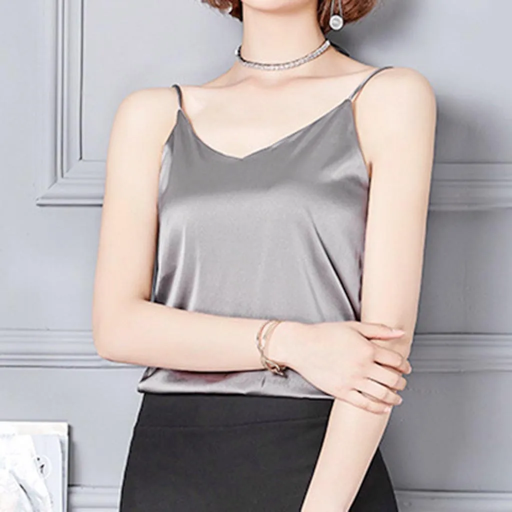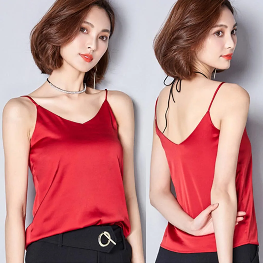 Женская сексуальная шелковая блузка на бретельках, рубашка из мягкого атласа