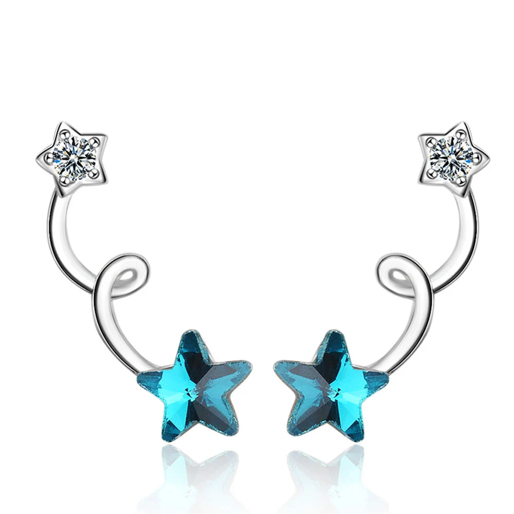 Корейские серьги из стерлингового серебра 925 пробы с синими звездами AAA + циркониевые серьги-гвоздики для женщин, модные серьги, ювелирные изделия Материал: серебро 925 пробы, циркон Размеры: как показано на рисунке Состояние: 100% новый бренд Повод: подарок на свадьбу, день рождения, День святого Валентина