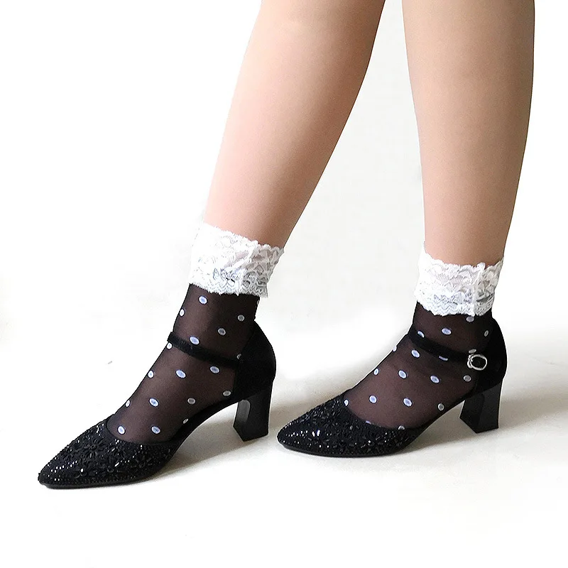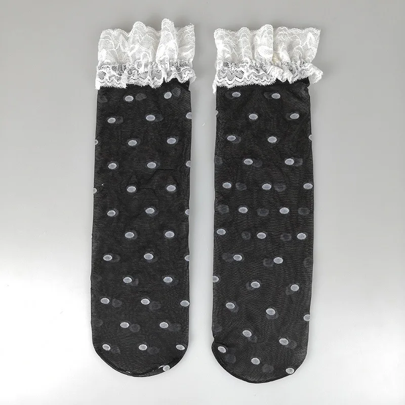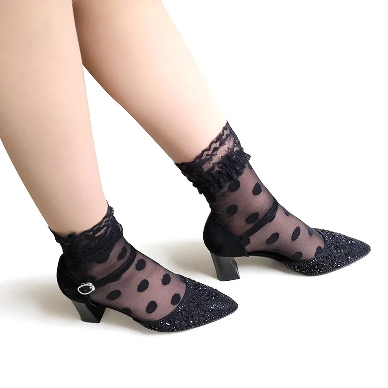 Новые Модные прозрачные тонкие сетчатые фатиновые носки до щиколотки на весну и лето эластичные сетчатые носки в горошек с кружевной бахромой Материал: нейлон + акрил Свободный размер.