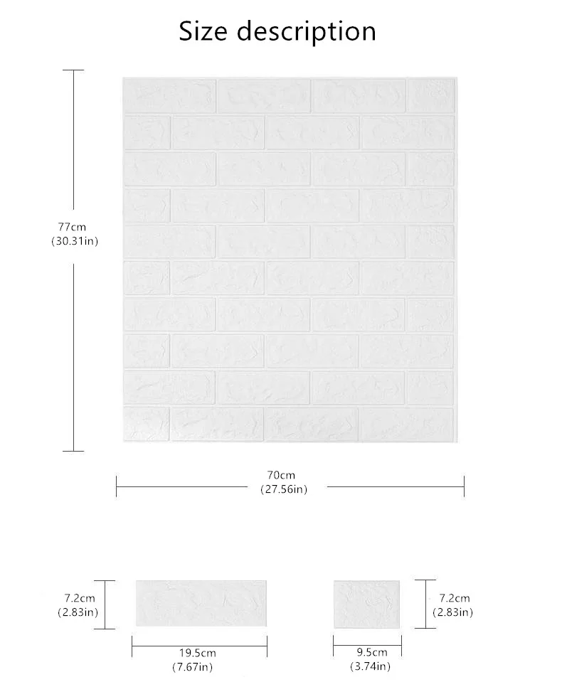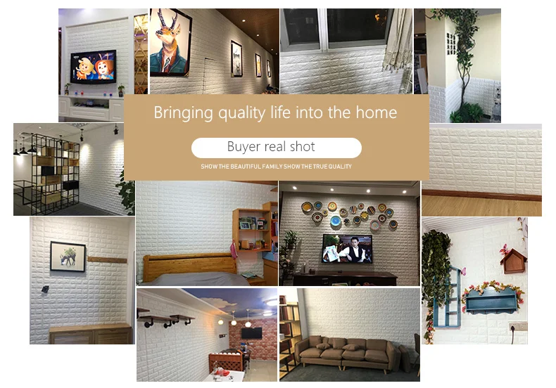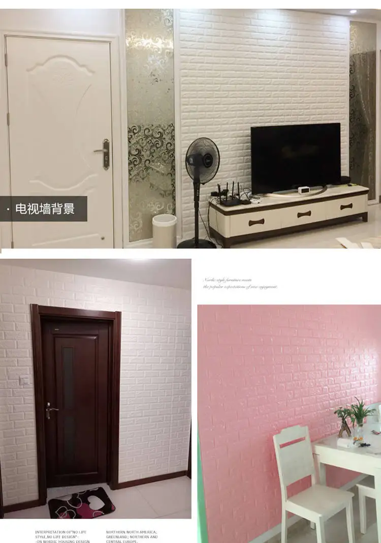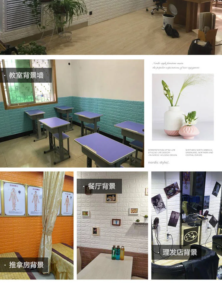 1: трехмерная декоративная мягкая пена, защита от столкновений для детей, забота о вашей семье. 2: Безопасность и защита окружающей среды, нетоксичный запах, подходит для семейного безопасного домашнего пространства. 3: Реалистичный, естественный эффект кирпичного узора, простой и современный стиль. 4: Бесплатный DIY, простой самоклеящийся дизайн, установка, повседневный коллаж, произвольный крой. 5: сравнение обоев с улучшенным эффектом шумоподавления.