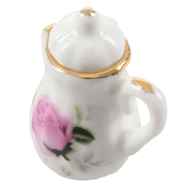2 комплекта 1:12 Кукольный домик Миниатюрный чайный набор: 1 Набор Розовый и 1 Набор розово-красный