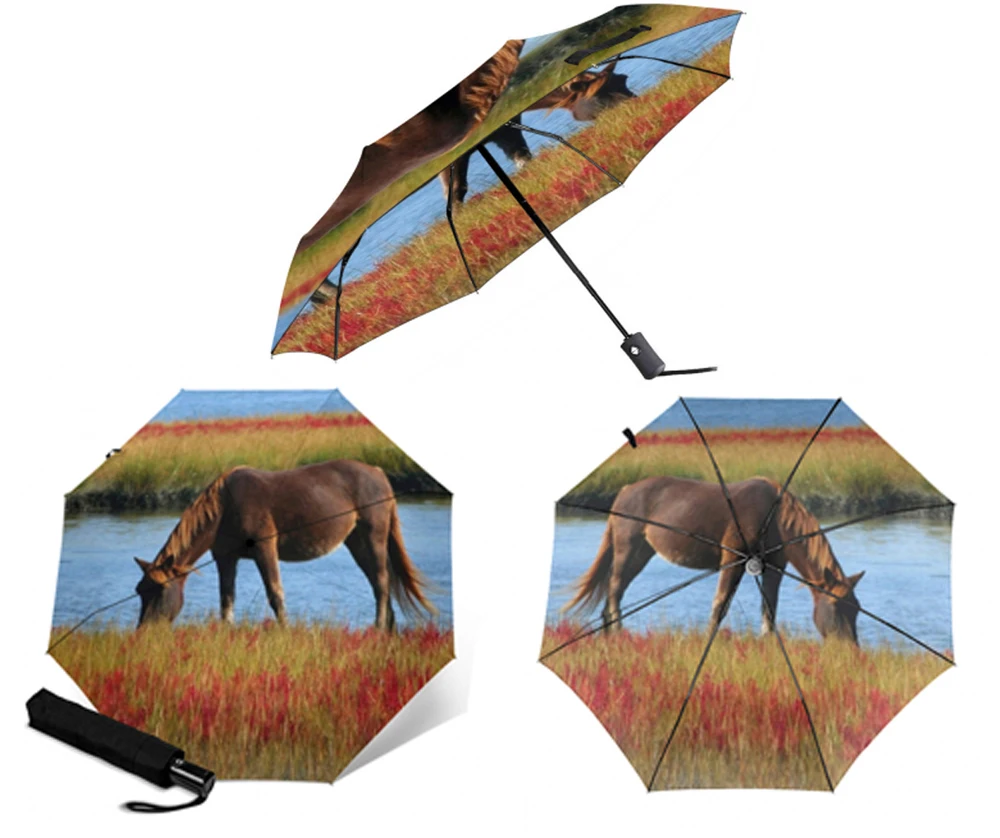 1. Откройте зонтик: А. Снимите крышку зонта и откройте Пряжка для зонтика. Встряхните поверхность зонта, чтобы Зонт открылся равномерно. B. Нажмите зонтик вверх от кнопки ручки зонта (будьте осторожны, чтобы не нажимать кнопку вниз) до тех пор, пока верхняя часть зонта не застревает и проверьте, надежно ли он крепится после открытия. 2. Закройте зонт: A. Осторожно нажмите кнопку ручки зонта, затем зонт будет обмотан. B. Расположите ребро зонта к держателю зонта после того, как он обмотан, а затем расправьте лист зонта по одному в соответствии со складывающимися отметками. Расположите лист зонта в том же направлении. Найдите Пряжка для зонтика, удерживайте лист зонта от середины в направлении пряжки и затяните ремень пряжки вокруг листа зонта по кругу. Поверните Зонт вниз и поверните его по часовой стрелке, затем его можно легко держать в чехле зонта.
