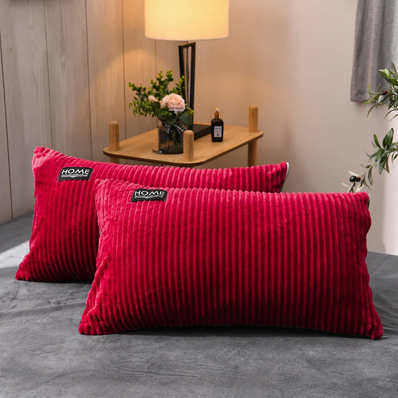 Мягкий фланелевый чехол для подушки 1 пара красный синий серый наволочки роскошные Твердые полосы Подушка на молнии чехол для кровати 48x74 см наволочка чехол s