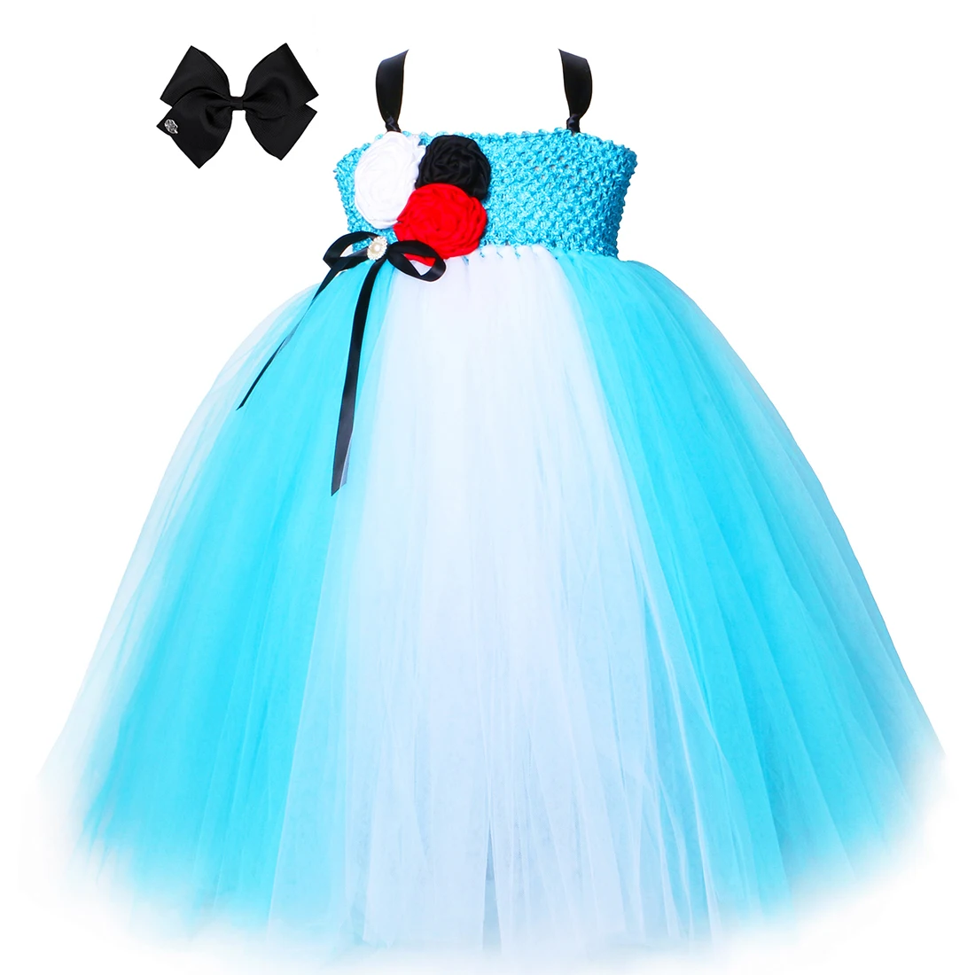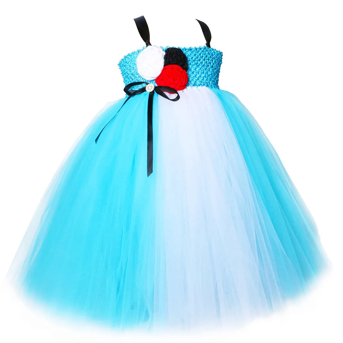 Платье принцессы с юбкой-пачкой для девочек; Небесно-голубое белое платье с цветами для девочек на день рождения; Детский карнавальный костюм Алисы на Хэллоуин