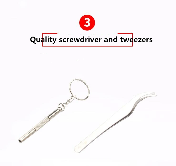 Название: Набор для ремонта очков Материал: сплав высокой твердости Размер: как на изображении Вес: 50 г подробнее: ящик для хранения Материал: пластик материал винта пинцета: нержавеющая сталь Материал носоупоров: Прозрачный Силикон Размер: пинцет: 80 mmi3.15, отвертка: 60 mmi2.36, носоупоры: 15x8Mi. 59x0,31 Количество: 4 компьютер носовые упоры, 1 пинцет, 1 отвертка, некоторые винты и винты PS: следующие размеры измеряются вручную, и Есть погрешность 1-2 мм (единица измерения: мм)