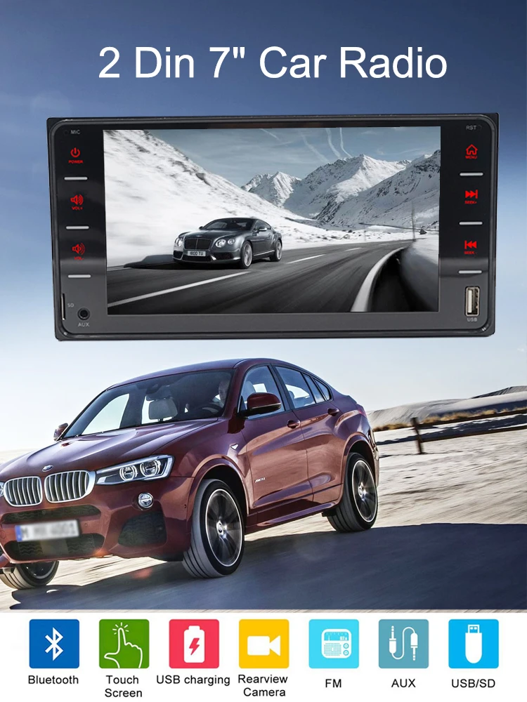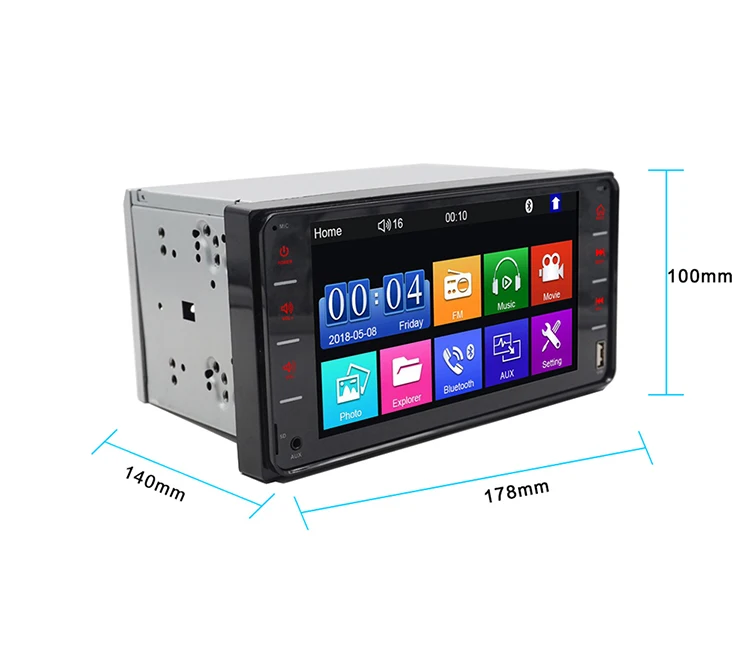 1. Функция заднего вида: Поддержка функции заднего вида. 2 、 высокой четкости сенсорный Экран: около 7-ми дюймовый двойной-заданный высокой четкости сенсорный TFF Экран Поддержка файлов ниже 1080P формат. Семицветная подсветка кнопки 3. Bluetooth-плеер: bluetooth-вызов и функция Bluetooth. 4. Функция fm-радио: функция fm-радио 5. Быстрая зарядка: функция быстрой зарядки: мобильный телефон и мобильный телефон.