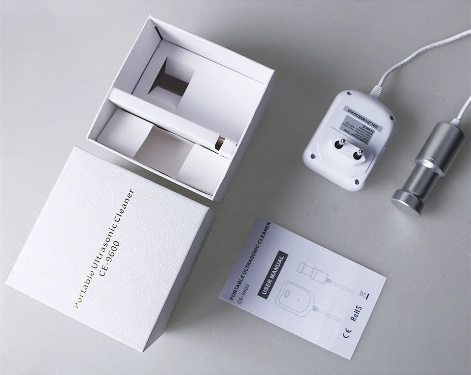 Портативный ультразвуковой очиститель (Поместите его в 0.6L ~ 5L контейнер/раковина) Частота: 50 кГц Ультразвуковая мощность: 70 Вт (макс.) Таймер: 10 минут. Размер источника питания: 88*65*40 мм (Д * Ш * В) Размер ультразвукового преобразователя: 32*93 мм (Dia * H) N.W. : 360 г G.W. : 520 г Внутренняя упаковка: 122*122*82 мм Картонная коробка: 505*260*275 мм Вес брутто/коробка: 13 кг Куб/коробка: 0,04 м3 Кол-во/коробка: 24 шт