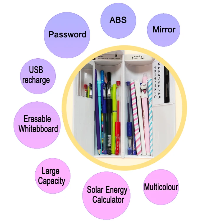 【Name】 креативный чехол-ручка с паролем [Размер] 21,5*6,7 см Материал: АБС-пластик Особенности: 【 Можно установить пароль и отличный usb-кабель для зарядки 】 1, новый стиль, креативный трехоткрытый цилиндрический 2, большая емкость, может вместить 20-25 ручек, 15 см линейка также может быть загружена 3. Магнитная застежка, более удобный переключатель 4, встроенный светильник-калькулятор, может использоваться с светильник, бесшумная работа 5, встроенное маленькое зеркальное украшение 6, экологически чистый материал ABS, безопасный и без запаха 7, белая версия дизайна приложения, используйте ручку белой доски, чтобы написать с потертостями, граффити/Примечание/расчет/Примечания... 8, подарите практичный подарок, 2 шт белая доска стираемая ручка + 1 шт стеклоочистителя Примечание: 1. Из-за различных методов измерения, погрешности в пределах 3 см неизбежны и приемлемы, пожалуйста, обратите внимание. 2. Пожалуйста, учтите небольшую разницу в цвете, вызванную камерой или компьютерным монитором. Также из-за различий в языке слова для описания цвета не будут полностью точными. 3. Чехол-ручка может быть выбран