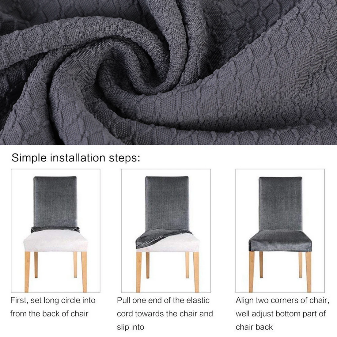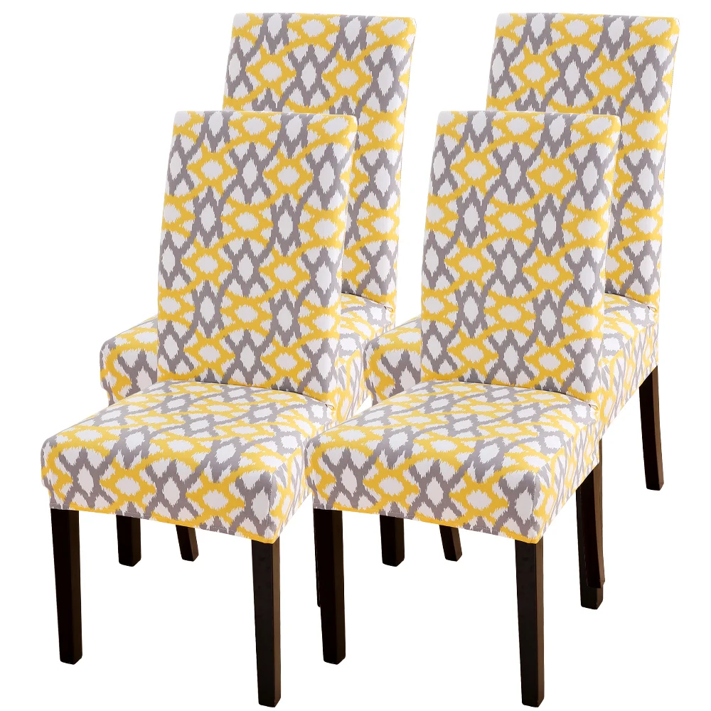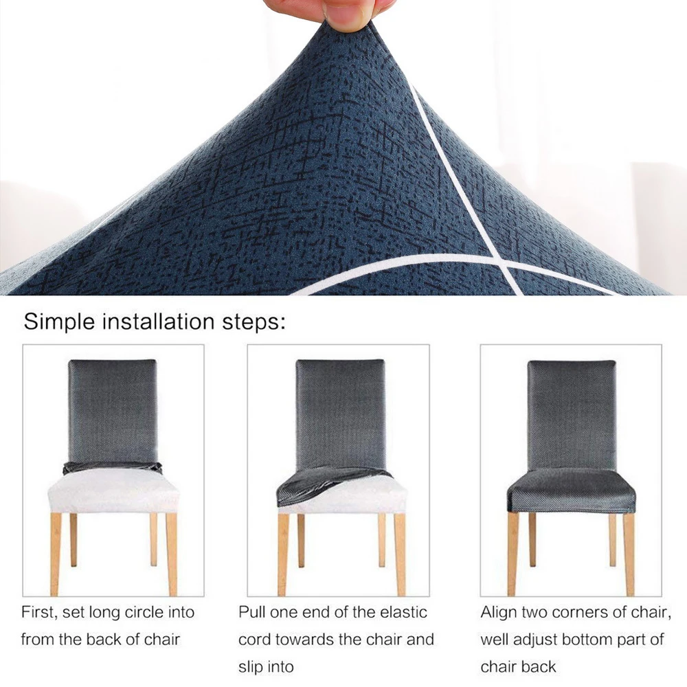 Размер: Высота спинки: 45-60 см, длина и ширина сиденья: 40-50 см Цвет: показанный на картинке Материал: 92% полиэстер 8% спандекс Посылка включает в себя: 1/2/4/6 шт х чехлы на стулья