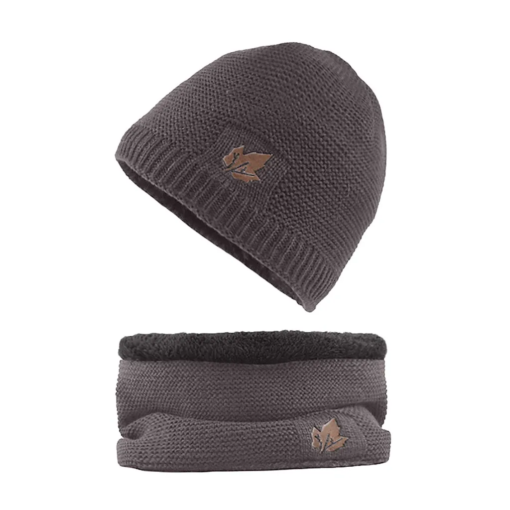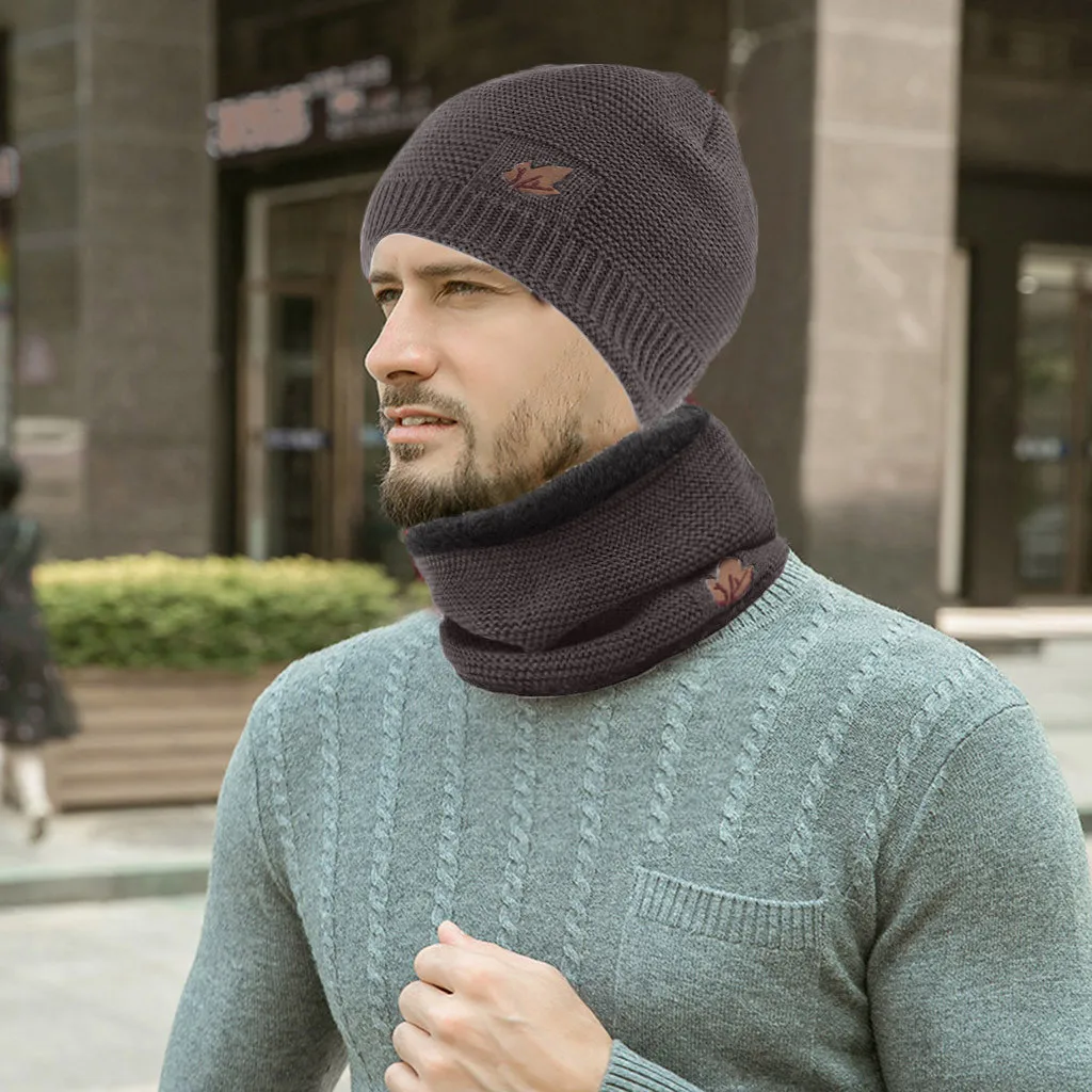 Мужская теплая шапка зимняя Толстая вязаная ветрозащитная шапка и шарф комплект из двух предметов