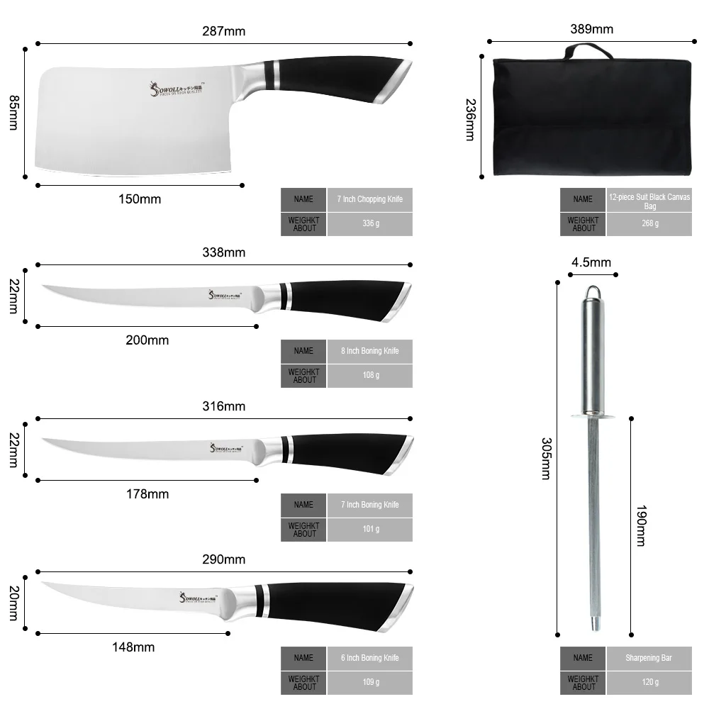 Простой в использовании и прочный, высококачественный набор ножей тщательно создан с использованием нержавеющей стали 3cr14. Высококачественное качество нержавеющей стали делает ножи тусклыми и устойчивыми к ржавчине.