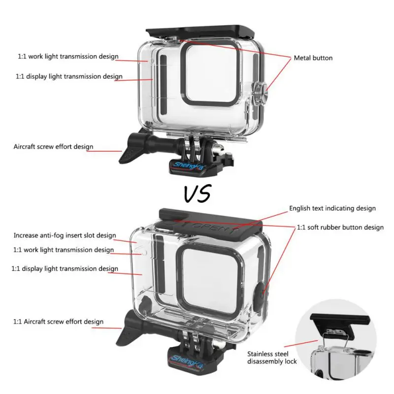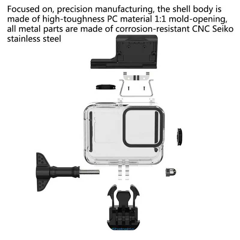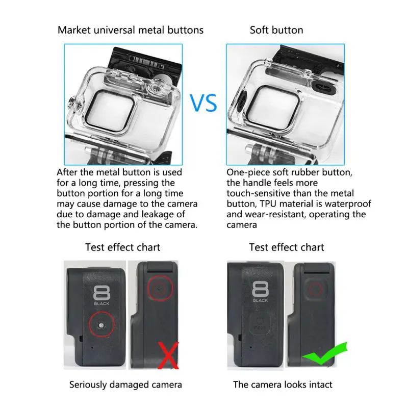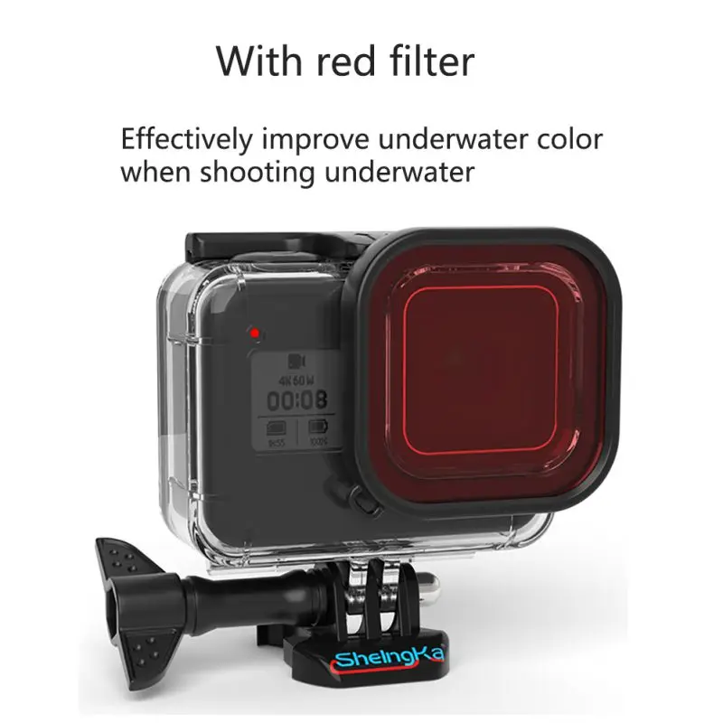 Features: Product Name:Waterproof Case for GoPro hero 8 Black Size:86mm * 37mm * 80mm Net Weight:78g Color:Black Model :FLW-320 Material:PC+316 stainless steel + tempered glass Features: Waterproof, dustproof, dropproof, pressure proof IP rating :IP68 Support water depth :60m Lens material :Tempered glass, light transmittance ≥95%, high hardness ≥9H Applicable models :GoPro hero 8 Black Country of Manufacture:Made in China Description: 1. Dedicated, seiko manufacturing, the shell is made of high-toughness PC material 1:1 open die, and all metal parts are made of corrosion-resistant CNC seiko stainless steel. 2. Elastic lock, easy removal, simple operation, easy installation and easy adaptation to GoPro 8 Black. 3. Multiple seals, delivery pressure test, high elastic seal ring, watertight, one step in place. 4. Soft rubber keys do not damage the machine, accurate mold opening design 1:1 soft rubber keys, no need to worry about the damage of the camera keys. 5. PC material with high light transmittance is made of PC material with high light transmittance up to 95%. 6. With red filter, it can effectively improve the color of water when shooting underwater. 7. It is equipped with anti-fogging insert to prevent fogging during underwater shooting, and the position of anti-fogging film is reserved independently for easy installation. Package include: 1*Waterproof Case for GoPro hero 8 Black 1*Aircraft Screw 1*Universal Base 12*Anti-fog insert Notes: 1.Please allow 1-3mm differs due to manual measurement. 2.Due to the different display and different light,the picture may not reflect the actual color of the item.Thanks for your understanding.