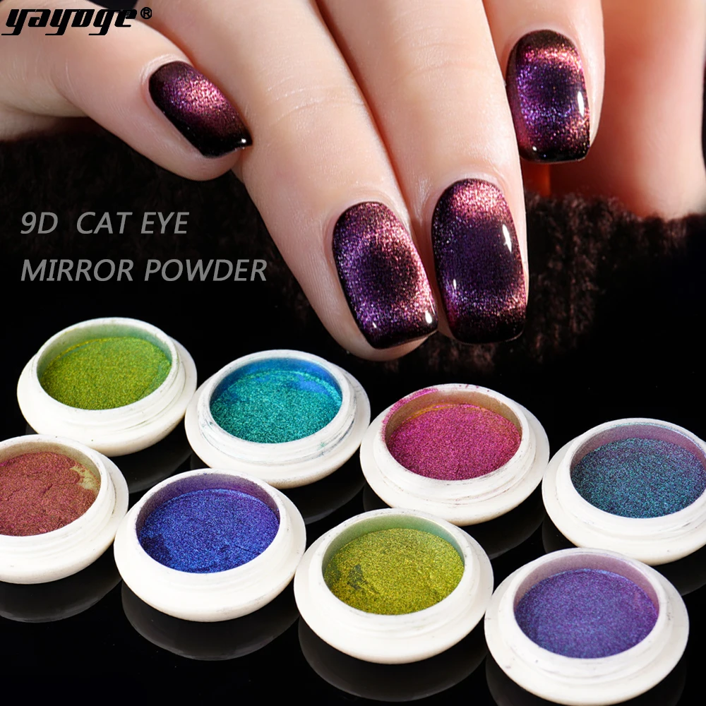 1 коробка 9D 0,2 г порошок для ногтей кошачий глаз блеск для ногтей Красочный Магнит зеркальный пигмент порошок пыль Ногти украшения для ногтей DIY
