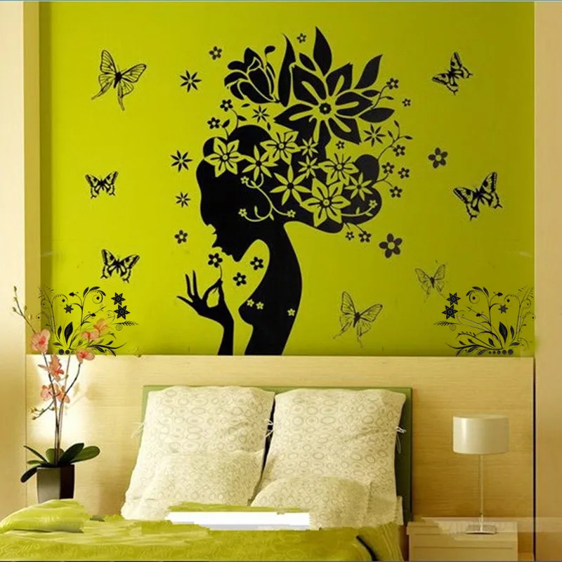 Красивые бабочки, цветы, фея, девочка, ПВХ стикер на стену, домашний декор, наклейки