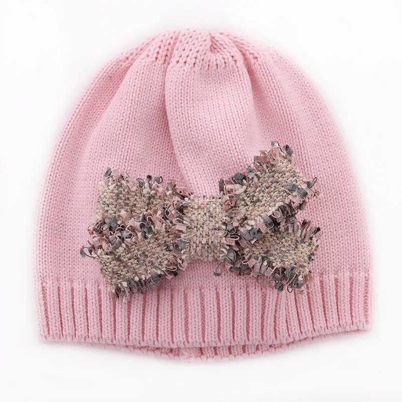 Милая Детская вязаная шапка зима с бантом для маленьких мальчиков и девочек, мягкая хлопковая шапка с бантом и кисточками
