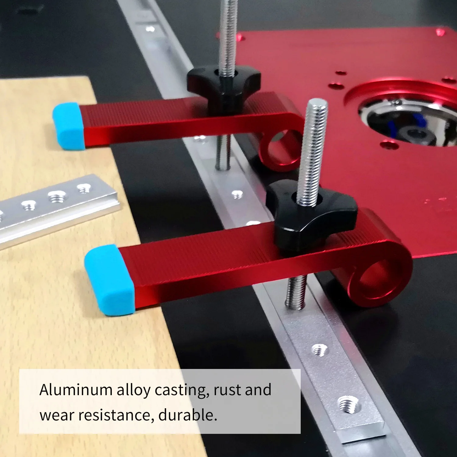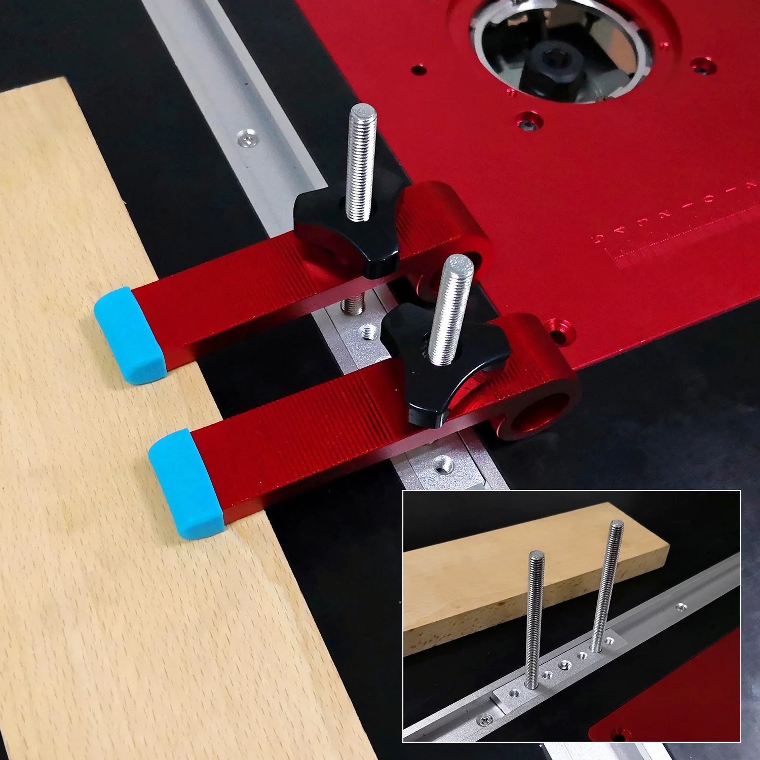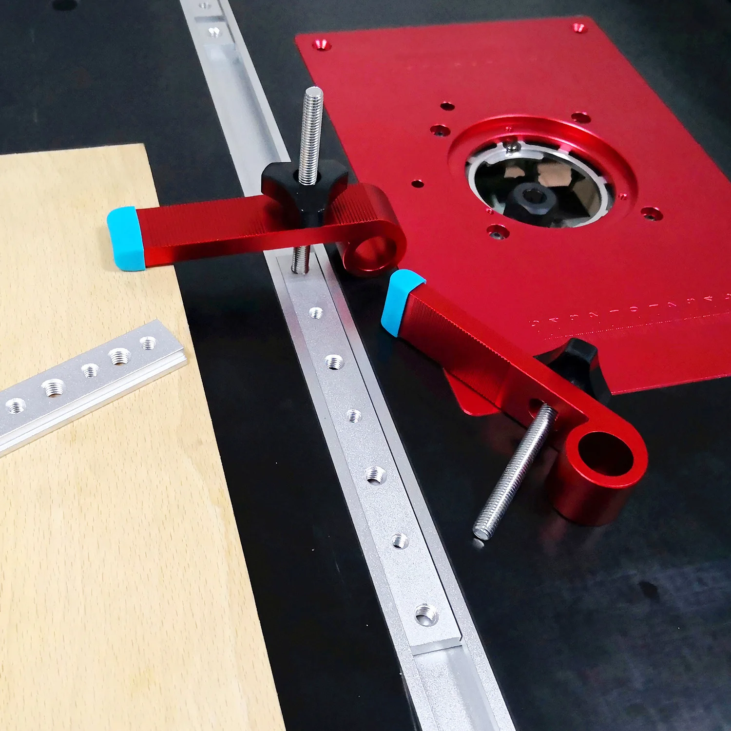 Простота в эксплуатации --- гибкий и простой в использовании зажим для Т-образной дорожки удерживающий зажим, скользит в Т-образную дорожку и быстро фиксируется с помощью гайки ручки руки.