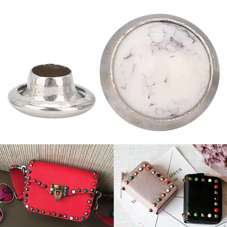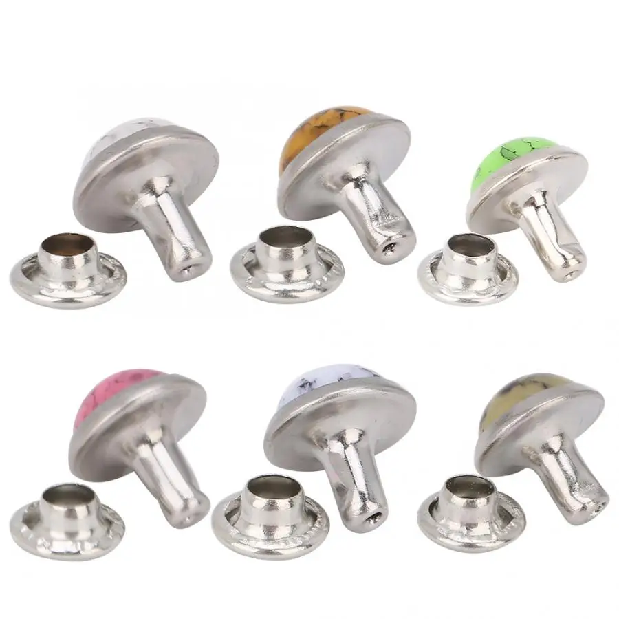 Состояние на 100% абсолютно новыйУстановка: Сначала пробивайте небольшое отверстие в коже, затем прижмите заклепку вверх, а затем используйте инструмент для ногтей в форме гриба, чтобы замолотить его.
