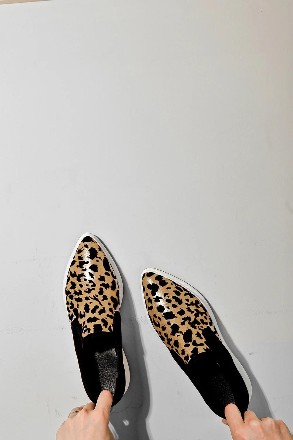 Леопардовые лоферы; детская замшевая обувь; сезон весна-осень; женская обувь; G021; Новинка; модные женские туфли на плоской платформе с острым носком; цвет золотой, серебряный