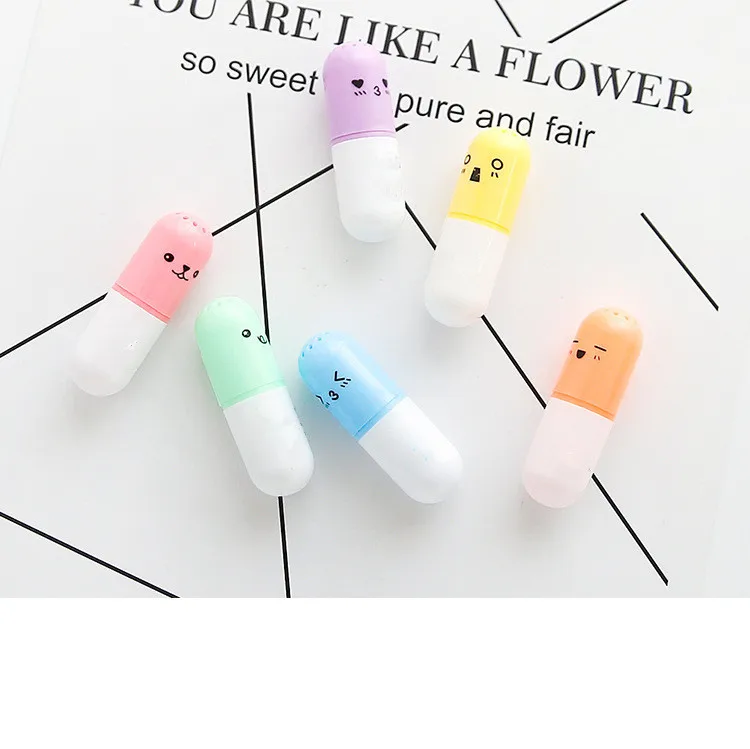 6 шт./лот, капсулы, хайлайтер, витаминные таблетки, маркер, цветные ручки, канцелярские принадлежности для офиса и школы