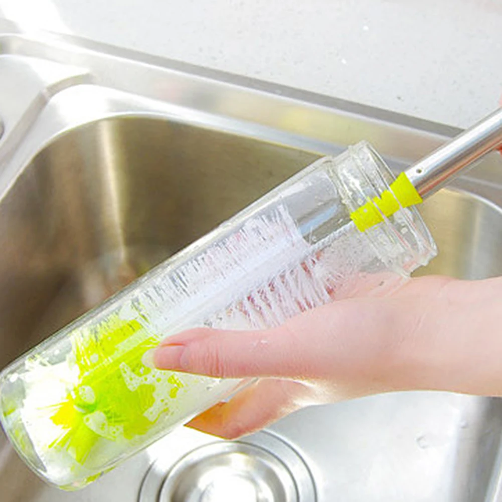 Круглая головка Сгибаемая длинная ручка бутылка стакан для воды щетка очистка инструмент для очистки