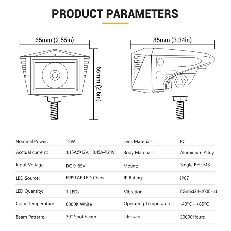 * USE HIGH POWER EPISTAR LED CHIPS, 300% BRIGHTER THAN NORMAL L ED DRIVING LIGHT: The light is 6000K pure white color temperature, and LEDs output almost 1500 lumens